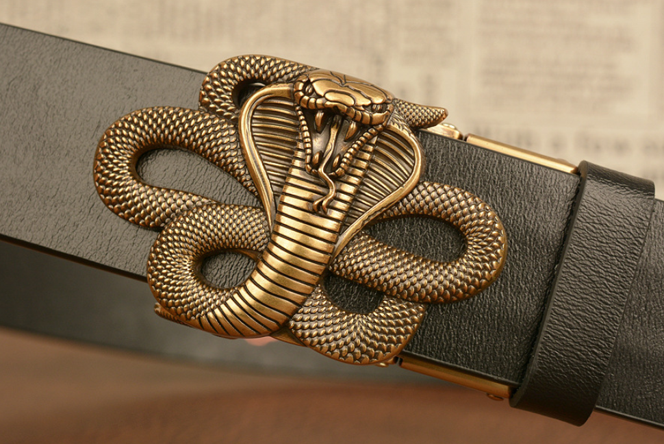 Color: black cobra bronze buckle with flat pattern, bronze cobra buckle with coffee color with flat pattern, ancient silver buckle with black cobra with flat pattern, ancient silver buckle with cobra with flat pattern