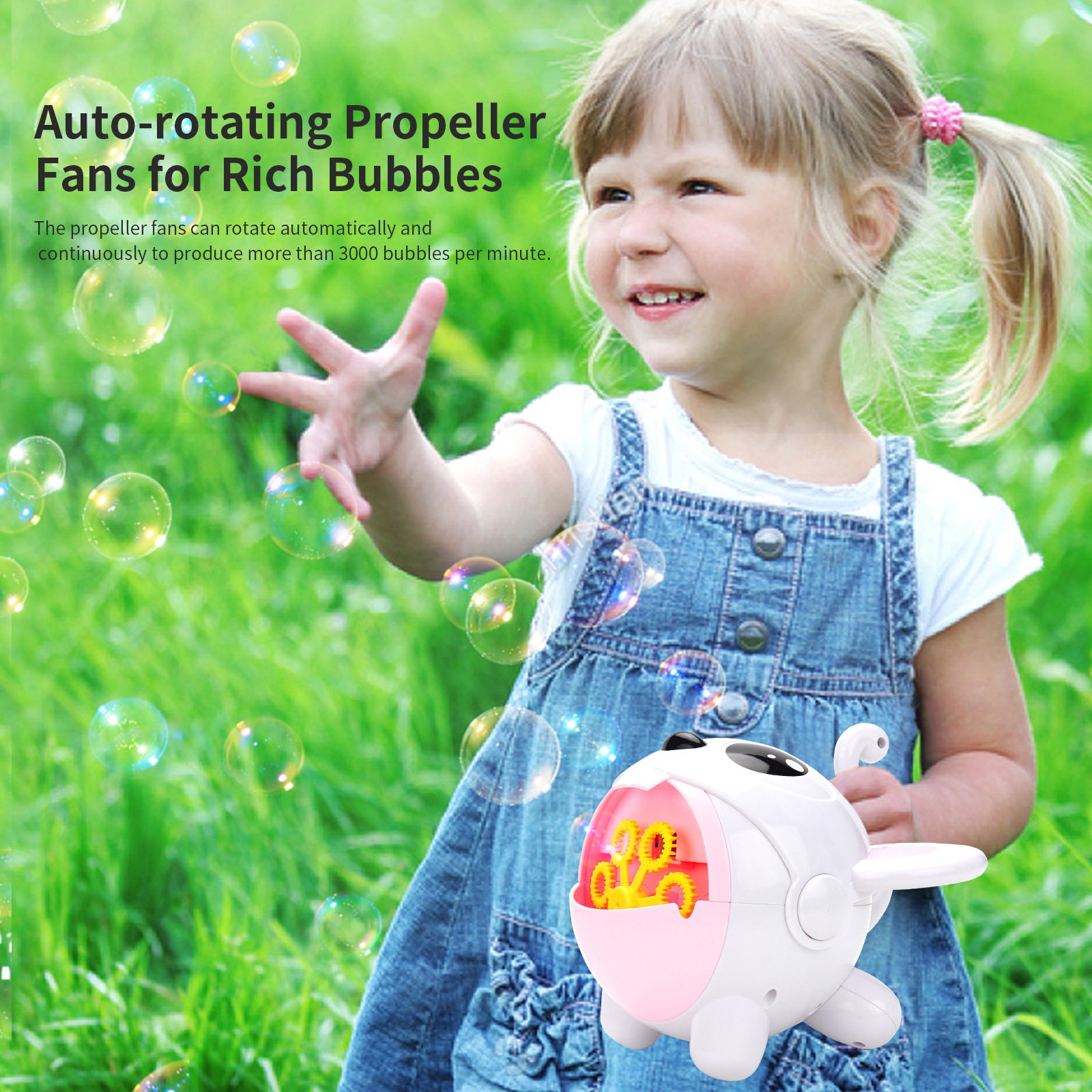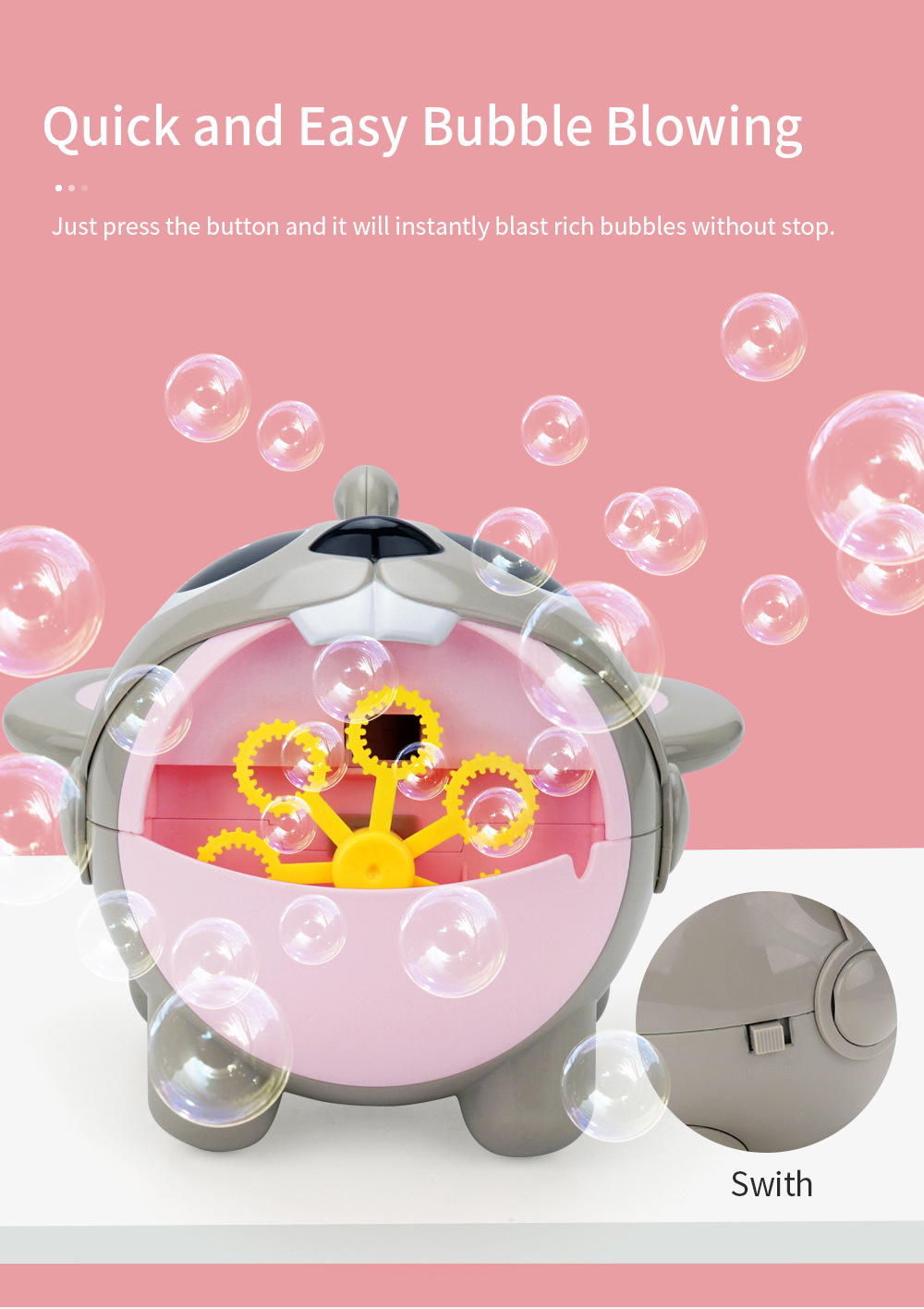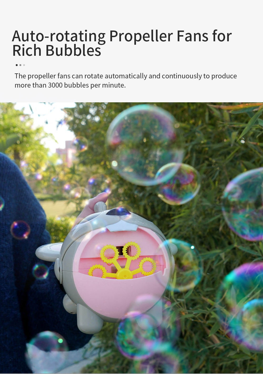 1. Simple operation: just pour in the bubble liquid (included), the bubble can be produced by one button.