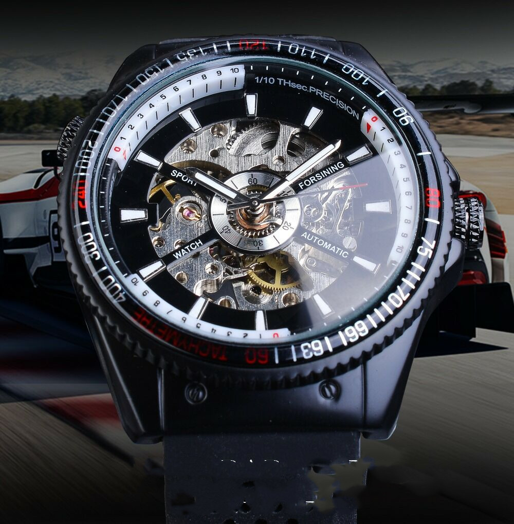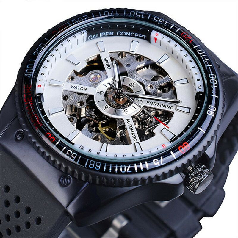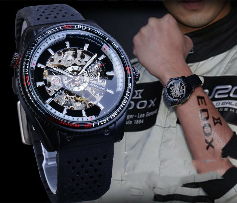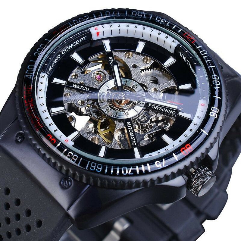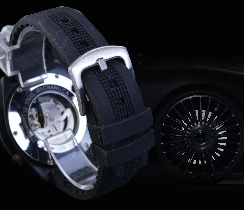 Automatic Hollow Mechanical Watch Men's Silicone Strap Watch