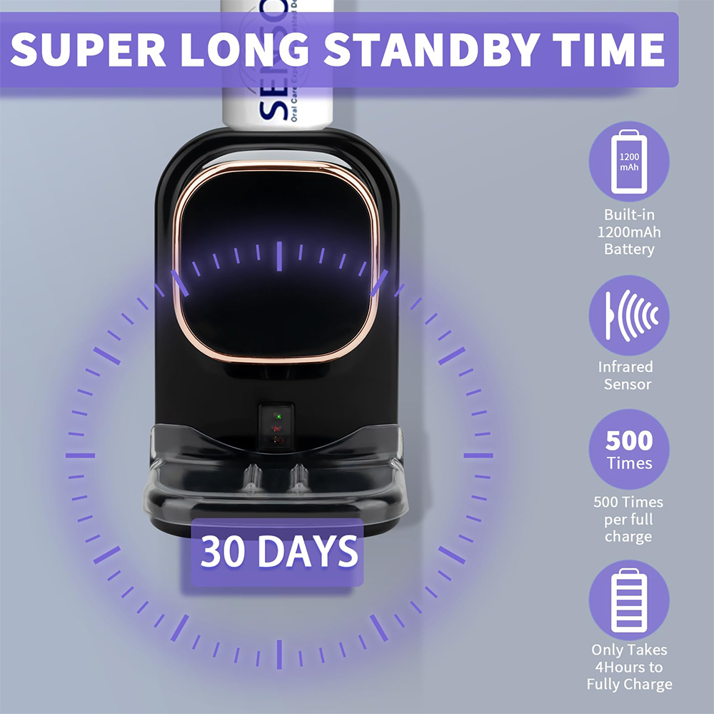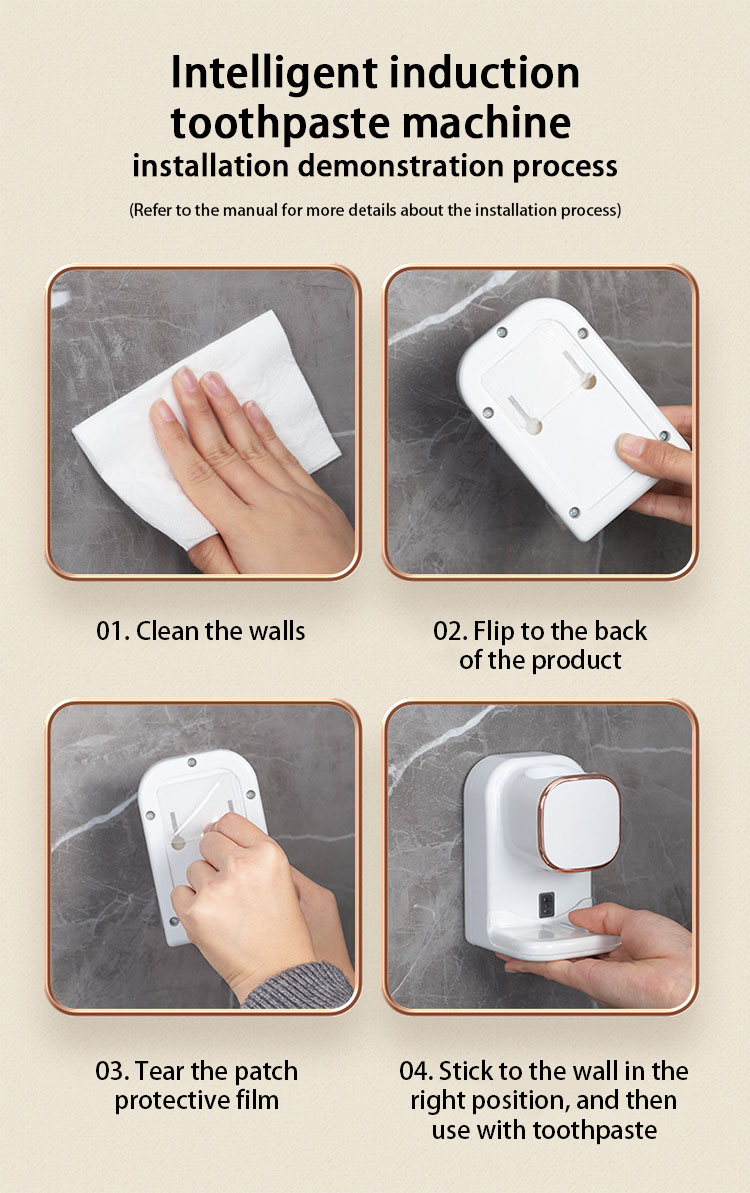 Upgrade your bathroom with this innovative device! No more squeezing or punching holes - just place your toothbrush under the sensor and toothpaste is dispensed automatically. Keep your bathroom clean and organized with this space-saving, wall-mounted solution.
