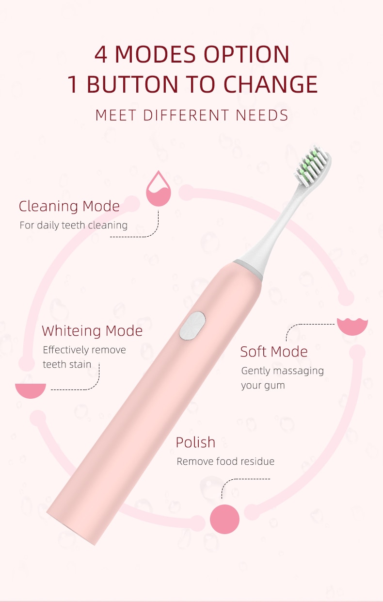 Brush handle x1, toothbrush holder x1, Y4 super soft brush head x2, Y2 cleaning brush head x1, USB charging cable x1