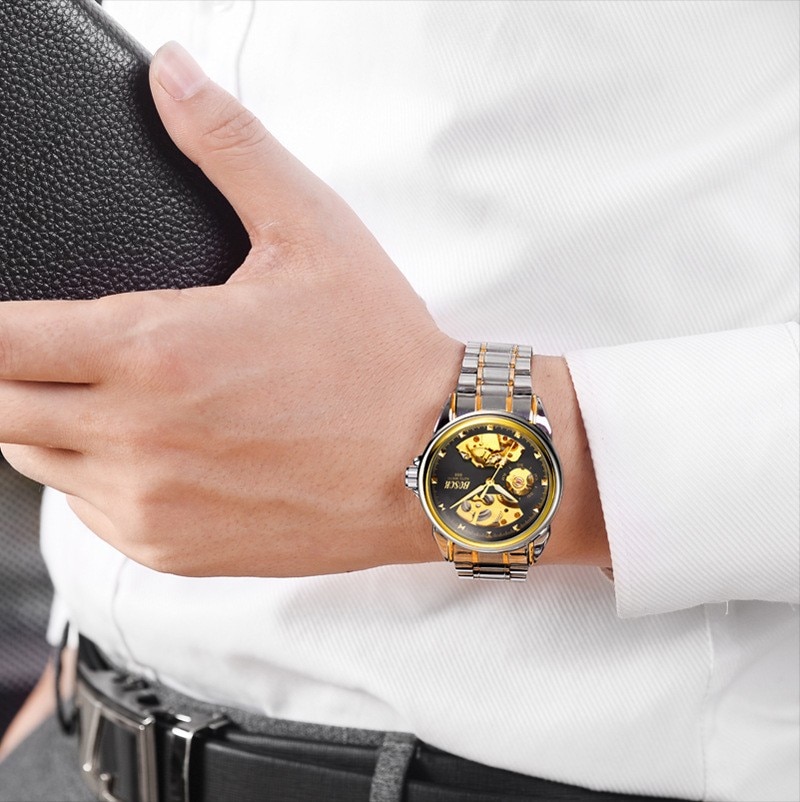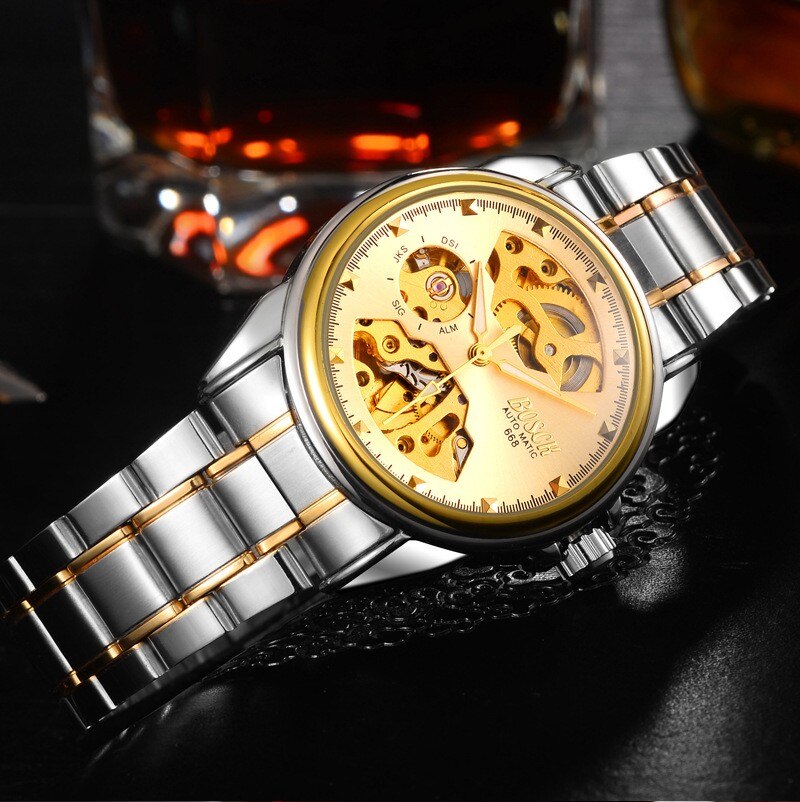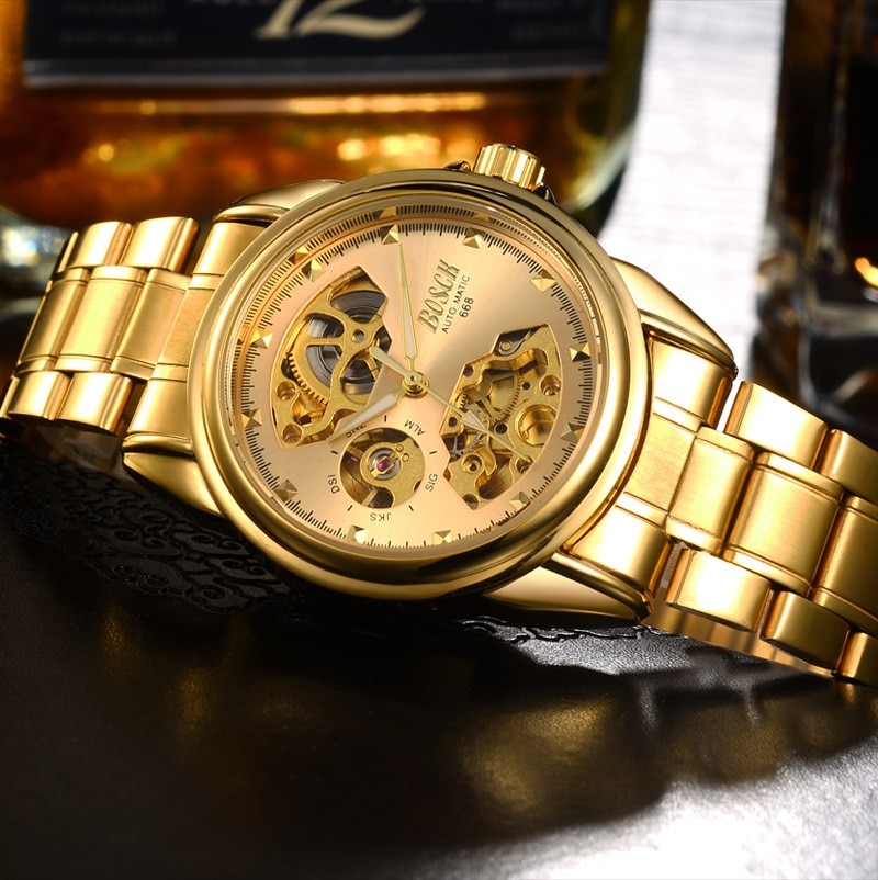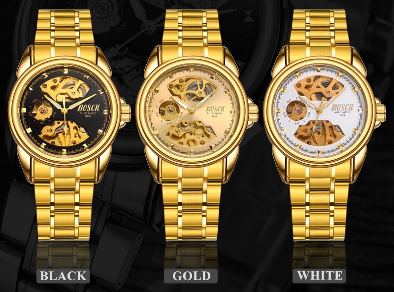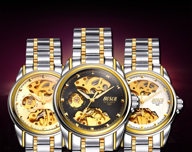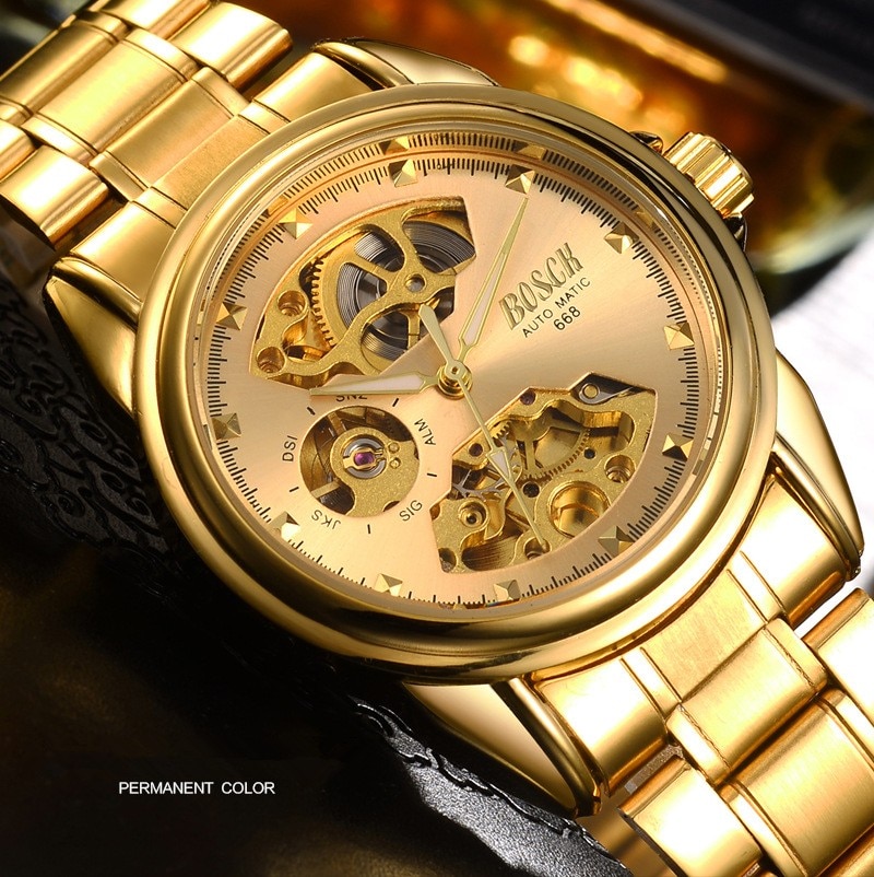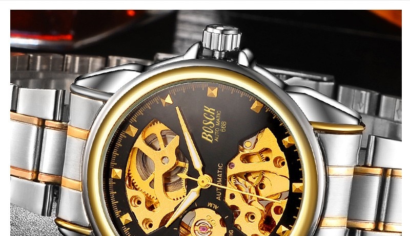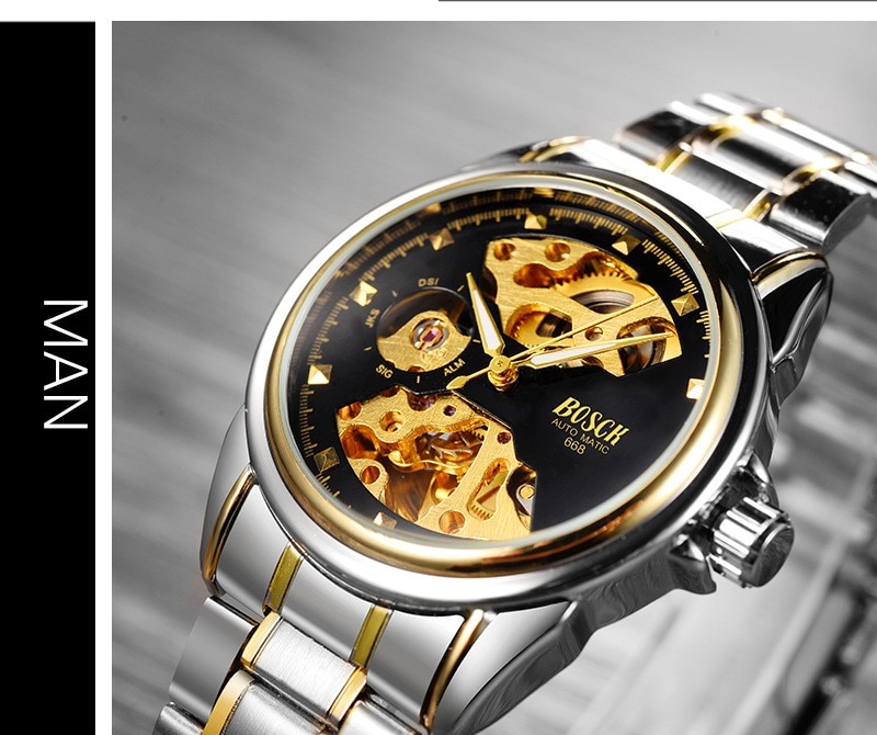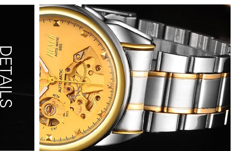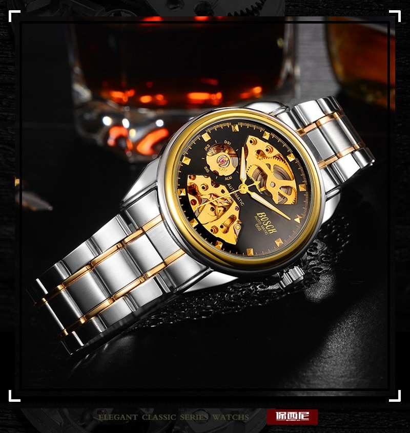 Brand name : BOSCK Style :Mechanical Wristwatches Dial Diameter : 38mm Case Thickness : 14mm Band Length : 23cm Band Width : 18mm Strap Material : Leather /Stainless Steel Water Resistant : 30m Dial Colors :Gold/White/Brown/Sliver
