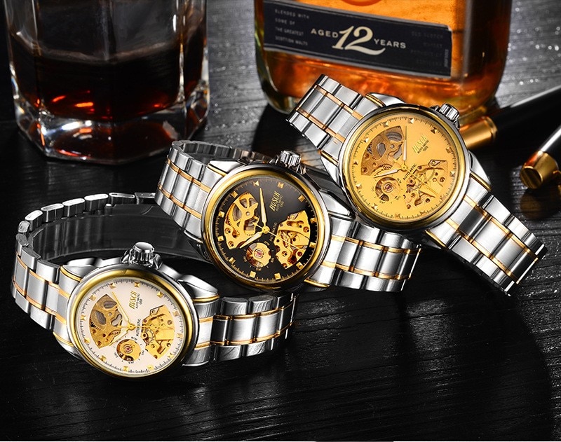 Pausini automatic mechanical watches Mens watch Korean business hollow waterproof mechanical watch wholesale gift