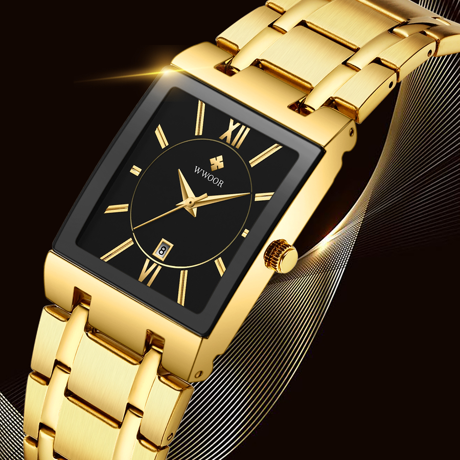 Color: 8858-rose shell black surface, 8858-gold shell black surface, 8858-gold shell gold surface, 8858-black shell black surfaceSquare watch