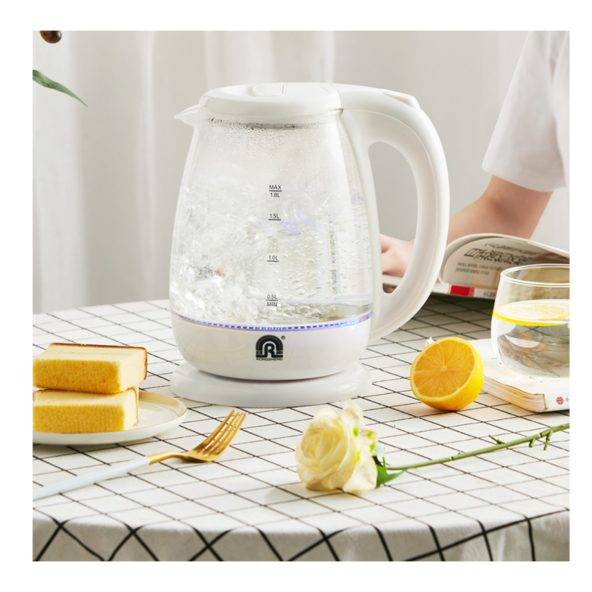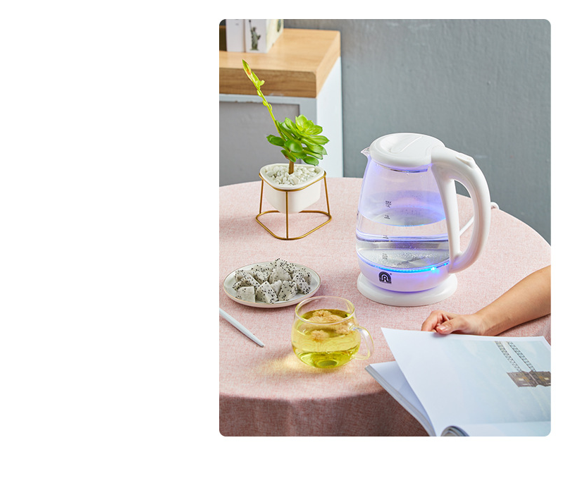 Advantages: high boron glass body;Brilliant blue boiled water;1500W rapid boiling water;1.8l large capacity;304 stainless steel heating plate;Intelligent temperature control sensor