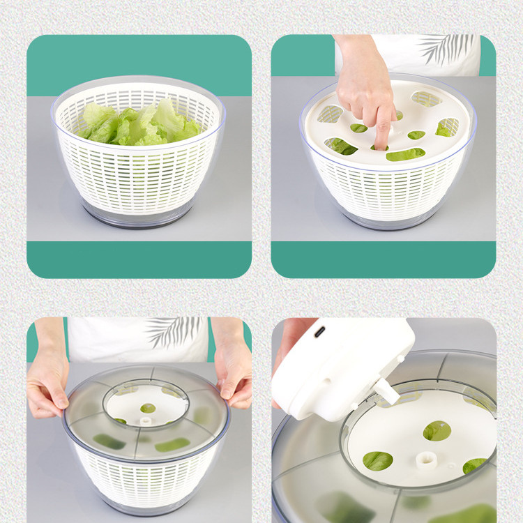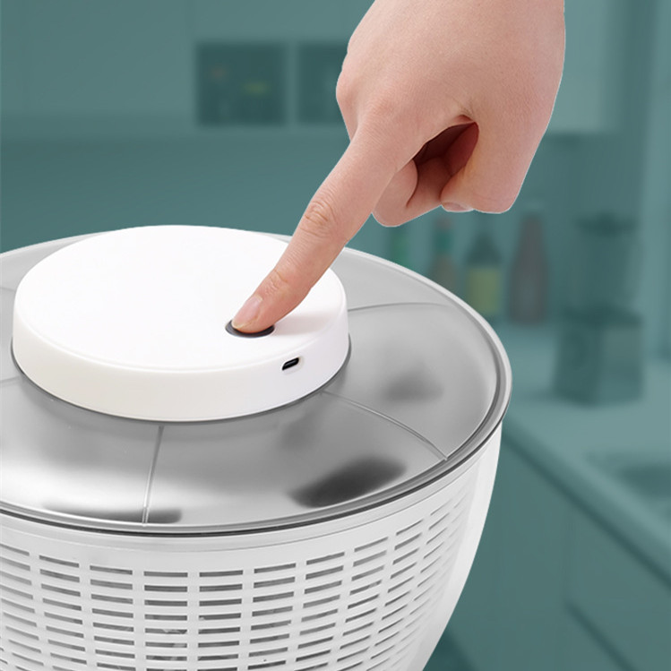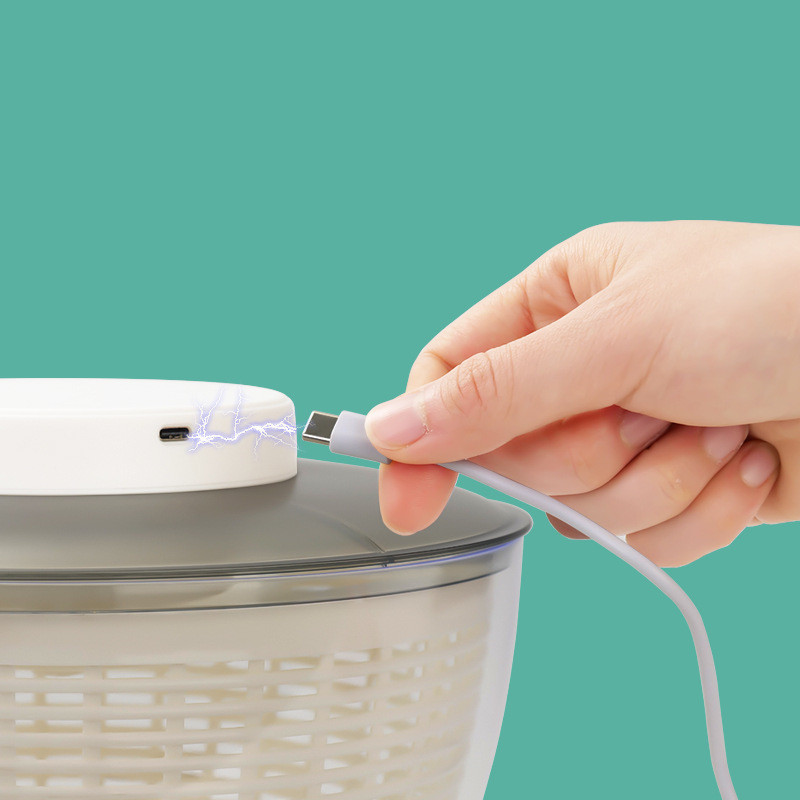 ELECTRIC SALAD SPINNER: This lettuce spinner is electric and USB rechargeable, just turn on the power button to start and stop automatically after 20 seconds. The 1500mAh battery takes two hours to fully charge and can be used 60 times.