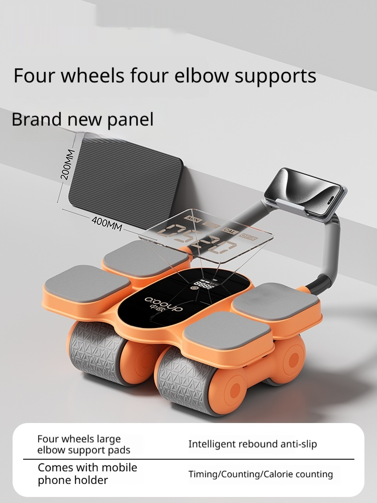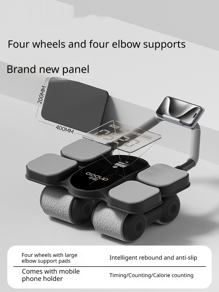 Automatic Self-Resilient Rollable Ab Wheel With Belly Support For Core Training On Four Wheels