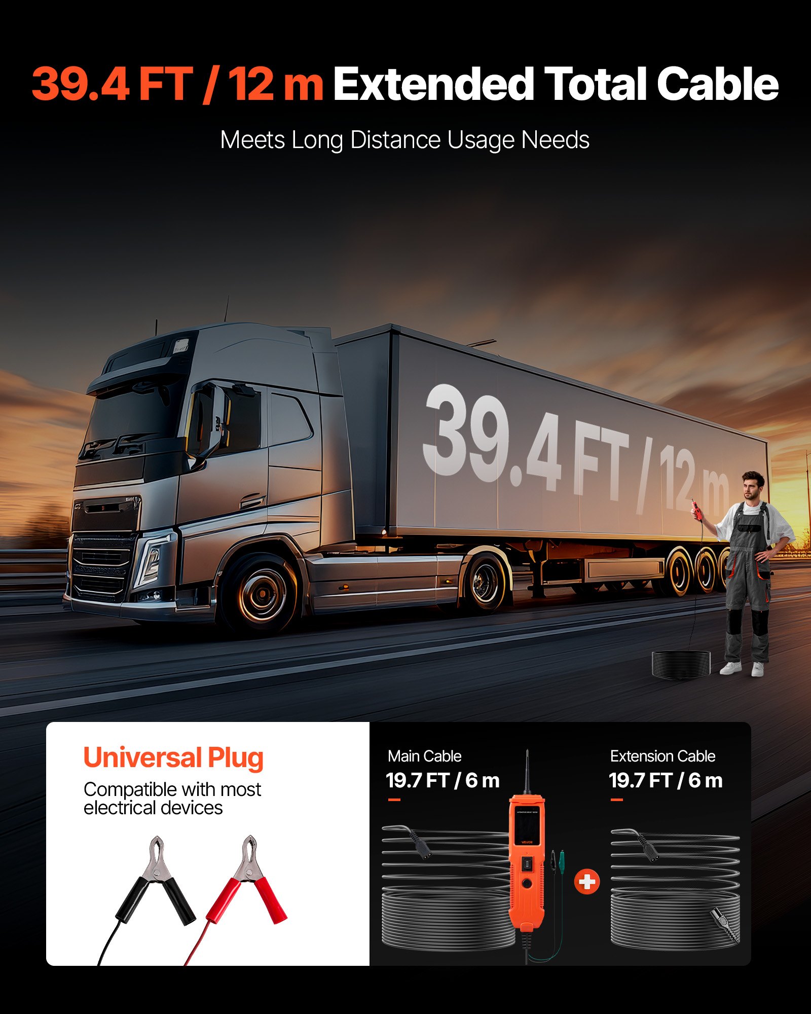 Long-Distance Usage: Our probe tester has two 19.7 ft (6 m) cables (main + extension) and universal connectors for most devices., supports testing polarity, current, resistance, frequency, continuity, line tracing, diode check, and component activation