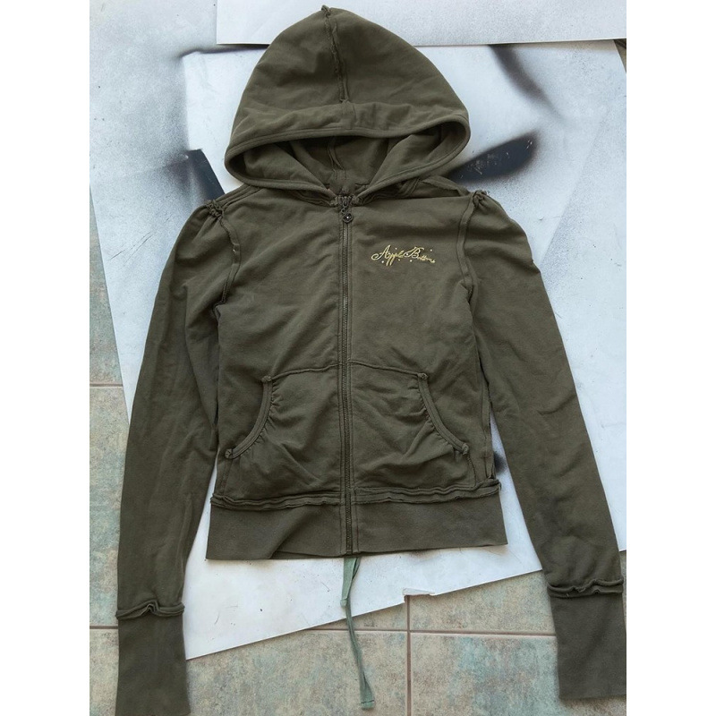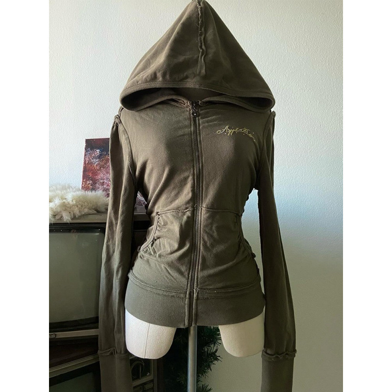Autumn American Style Vintage Design Olive Green Hooded Printed Sweater