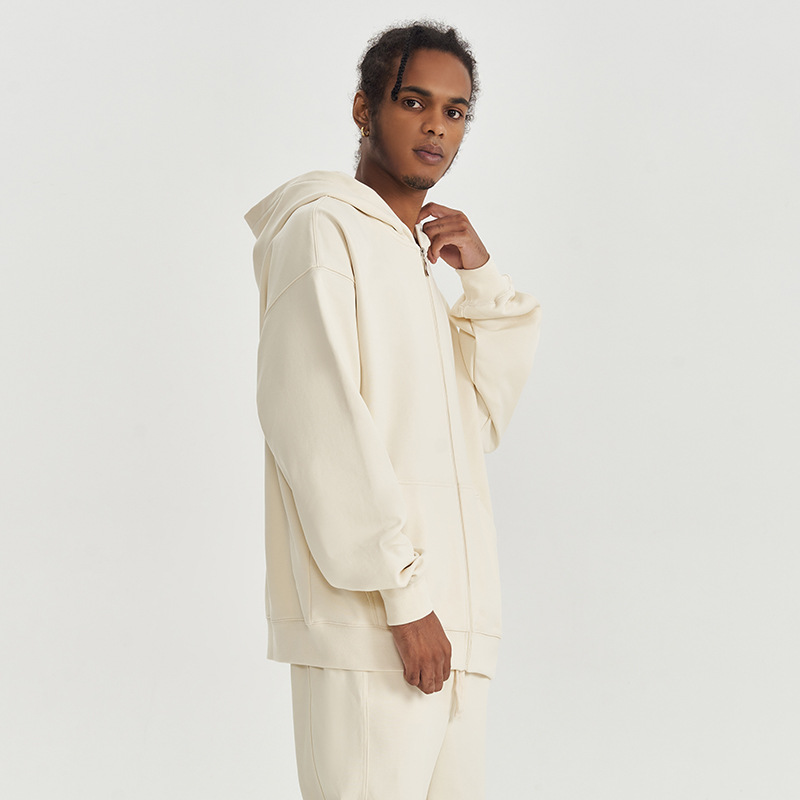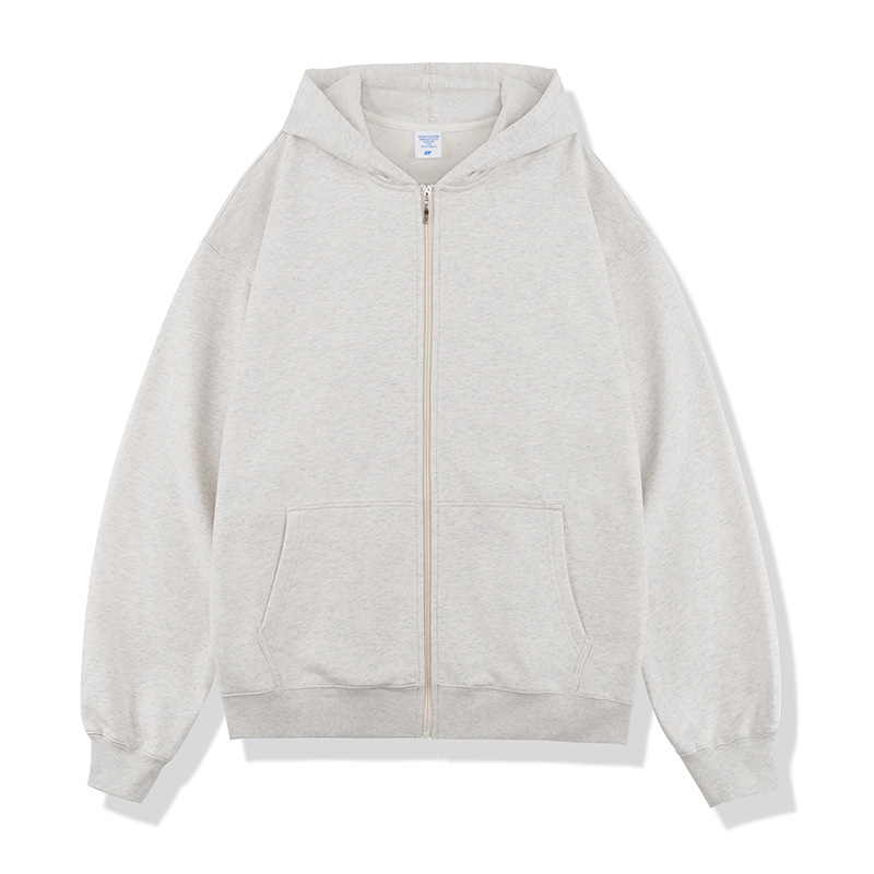 Autumn And Winter 450g Terry Loose Fashion Brand Zipper Hooded Sweater Solid Color