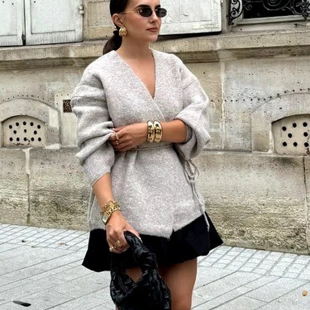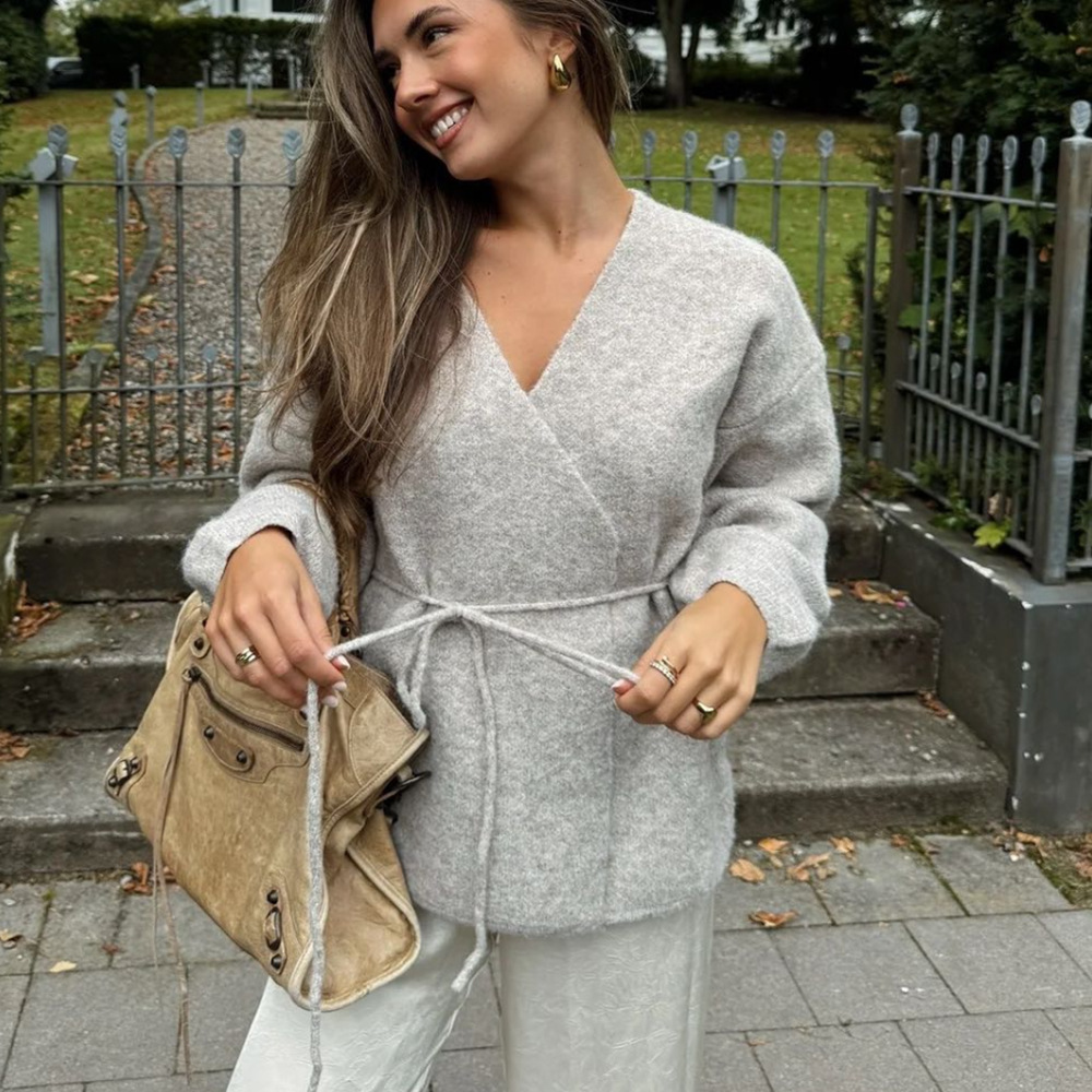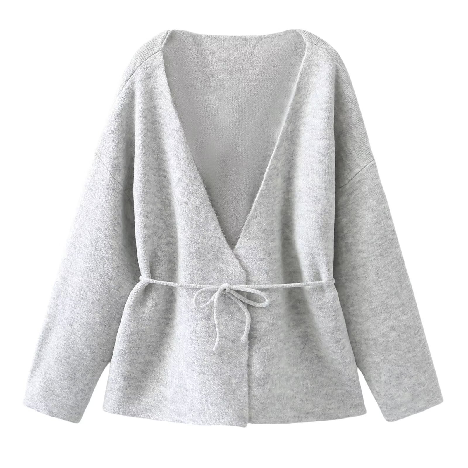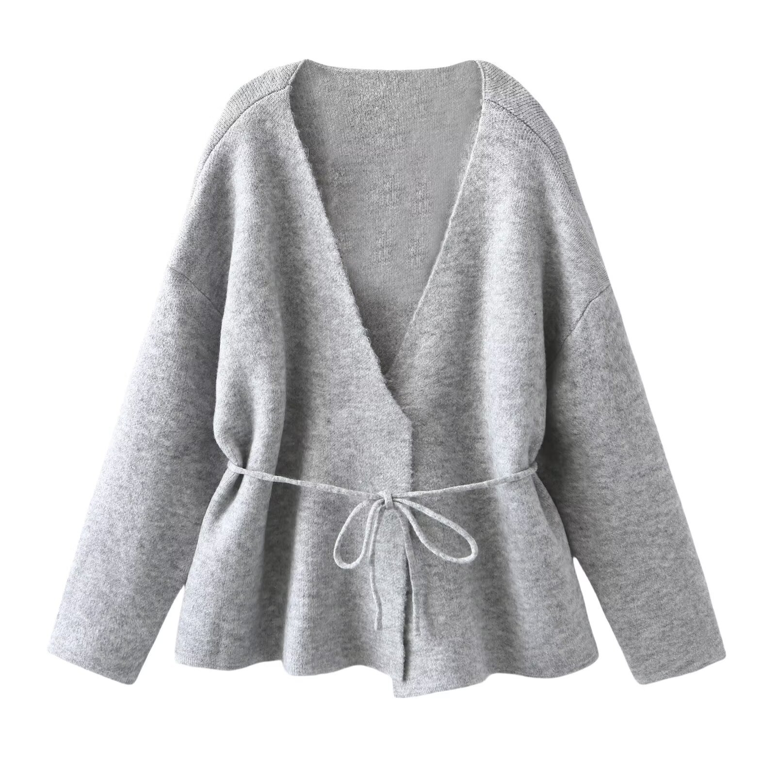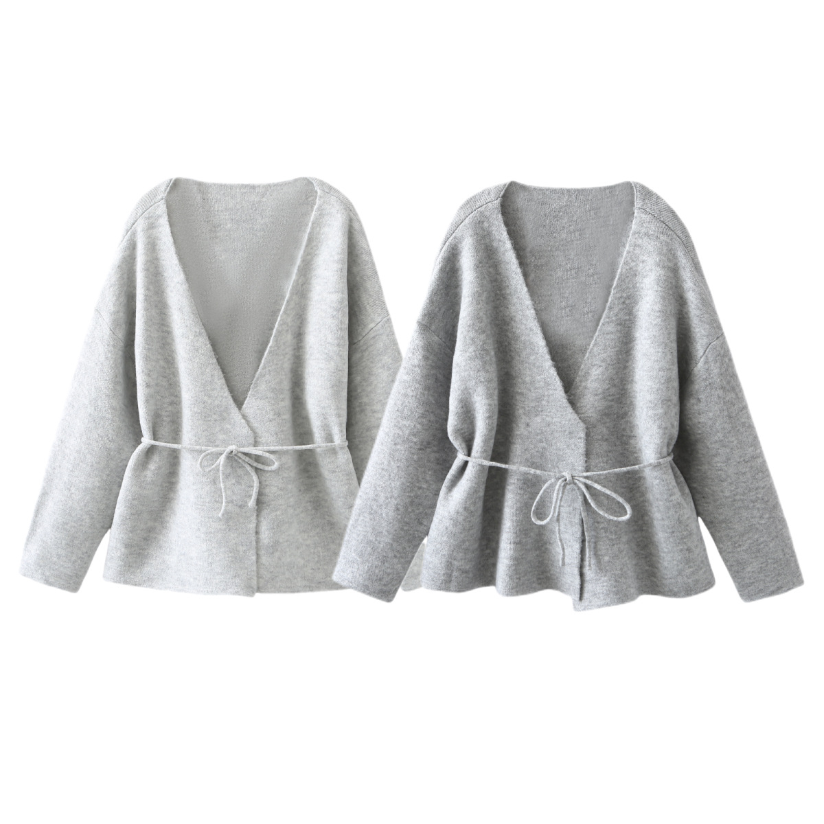 Autumn And Winter Belt Woolen Simple Cardigan Sweater