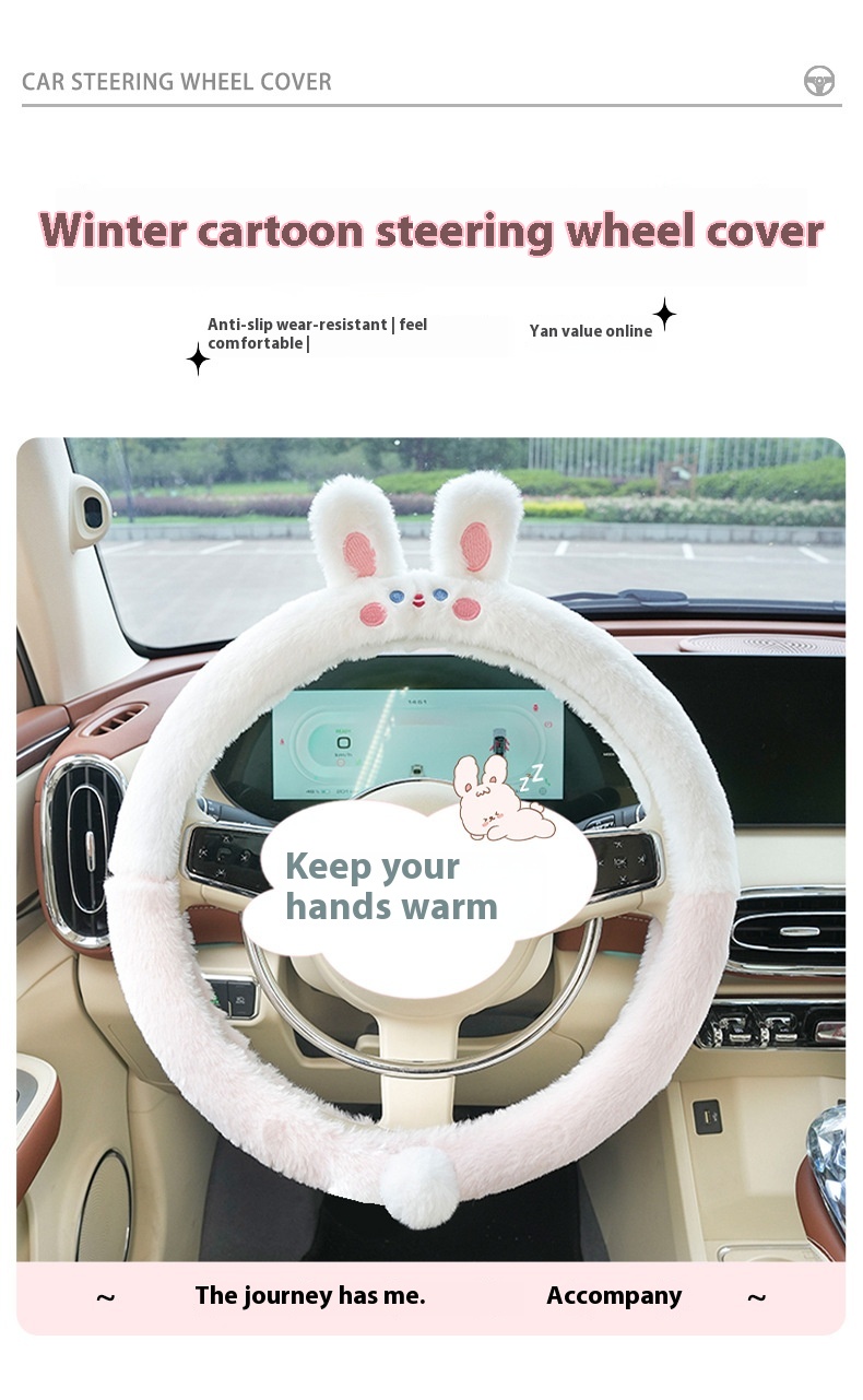 Color: rabbit fur embroidered rabbit steering wheel cover, rabbit fur embroidered cat steering wheel cover, rabbit fur embroidered panda steering wheel cover, rabbit fur embroidered bear steering wheel cover