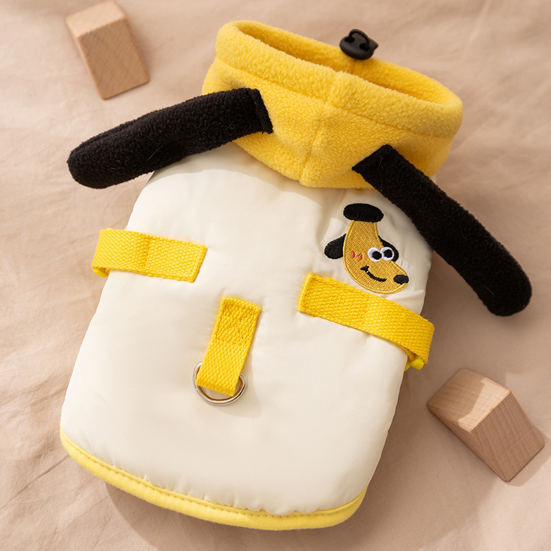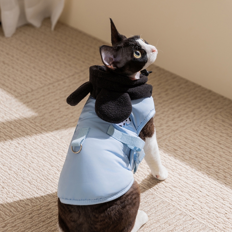 Add a touch of cuteness to your pet's wardrobe with this Dalmatian Ear Pet Vest! Featuring a light blue padded design, adorable black plush ears, and a Dalmatian embroidery detail, it’s both stylish and functional. The integrated metal leash ring allows for easy walks, while the soft, warm fabric ensures comfort. Perfect for small dogs, this vest combines charm, practicality, and coziness, making it ideal for daily outings or casual wear. Let your furry friend stand out with this eye-catching, playful piece!