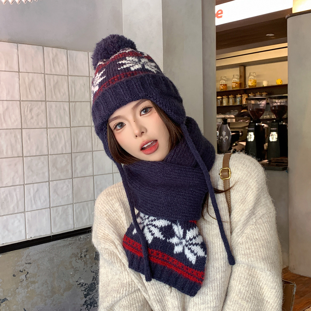 Color: gray hat, blue and white hat, brown hat, red hat, navy blue hat, blue and white scarf, gray scarf, navy blue scarf, red scarf, brown scarf