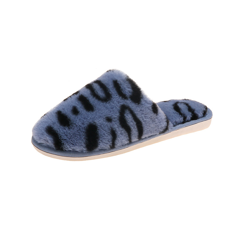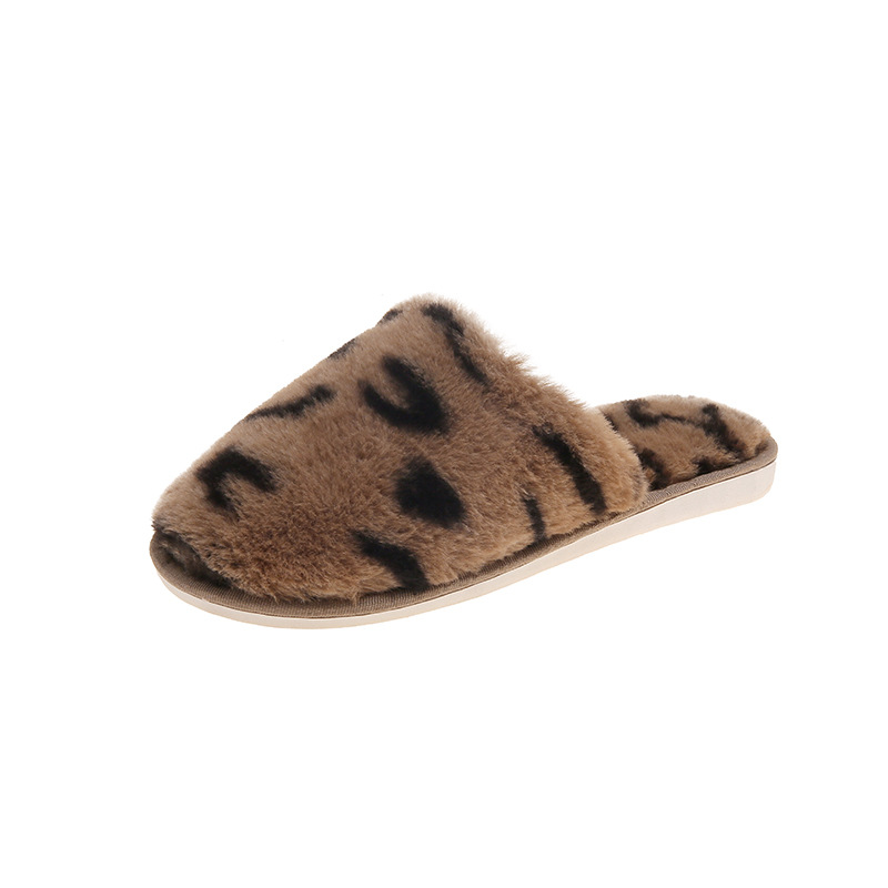 Autumn And Winter Cotton Slippers Women's Toe Cap Leopard Plush