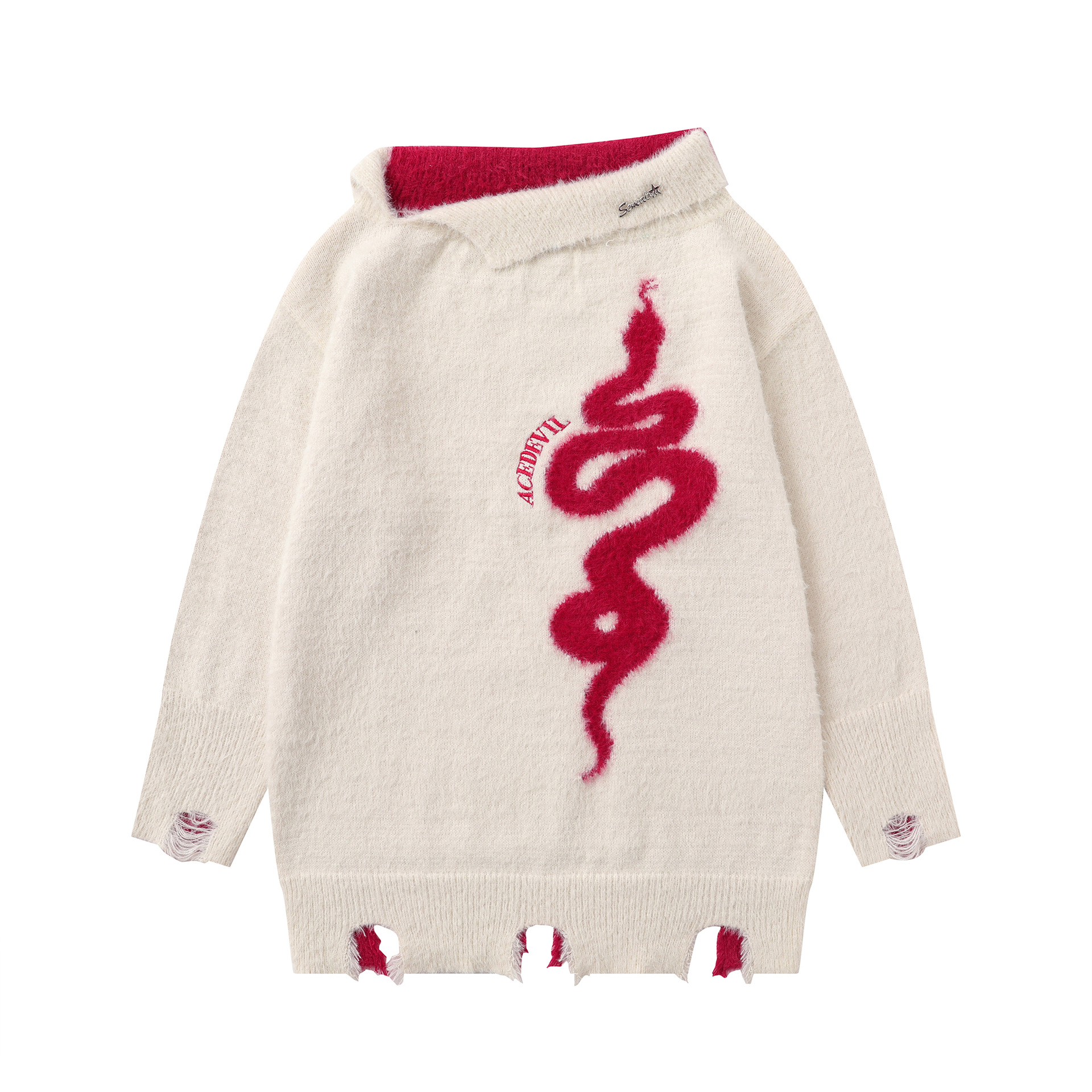 Autumn And Winter Design Sense Niche Women's Diagonal Collar Idle Style Loose And Warm Knitwear