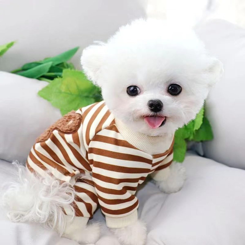 Cute Design: Classic fashion striped bear dog clothes, pullover, round neck, long sleeves, warm, four-legged design, cute pattern, fashionable and beautiful. Wear it to make your pet baby more cute.
