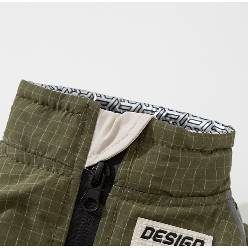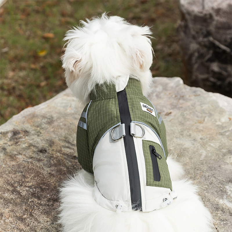 Equip your pet for outdoor exploration with this Outdoor Adventure Pet Vest! Featuring a khaki plaid and beige color-block design, it includes a built-in leash ring, a secure zipper pocket for essentials, aThe durable, padded fabric ensures warmth and protection, while the functional details like adjustable straps and a smooth zipper make it perfect for hikes, walks, or urban outings. Ideal for pet parents who prioritize both style and practicality, this vest lets your furry companion embrace adventure in comfort and fashion. A must-have for the active, design-conscious pet!