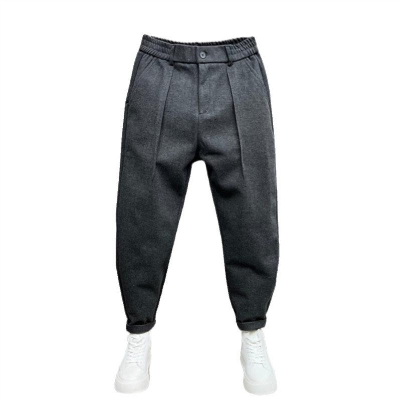 Autumn And Winter Draping Woolen Wide-leg Pants Men's Pu Handsome Loose