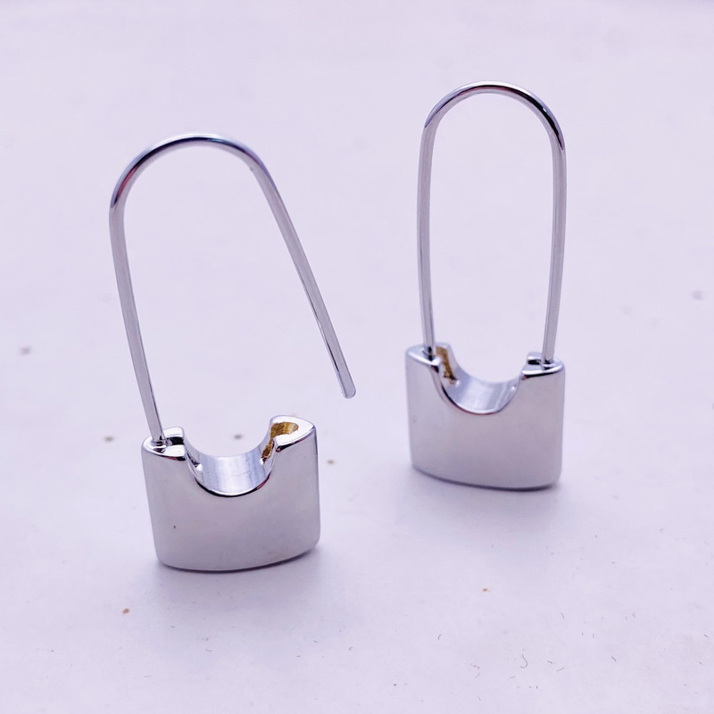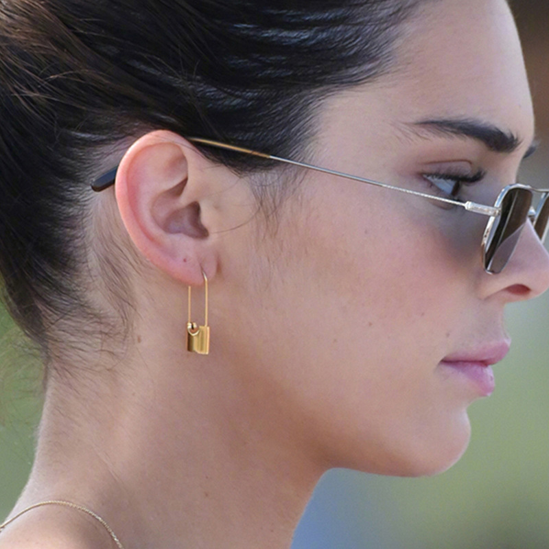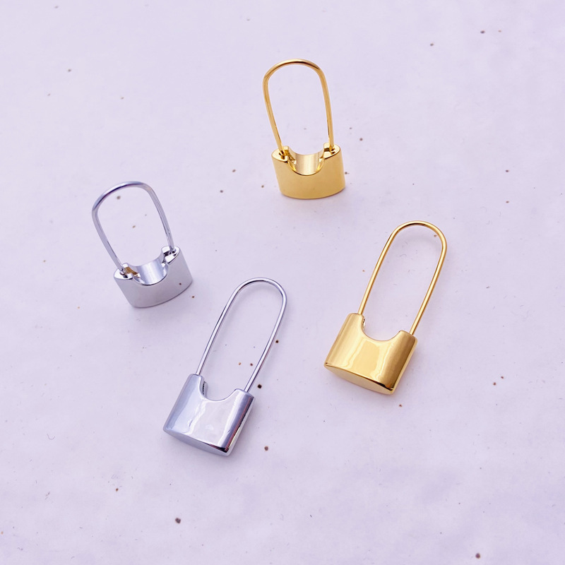 Vintage small lock earrings Europe and the United States Ken beans the same autumn and winter earrings niche ins cold wind plated 18k gold earrings