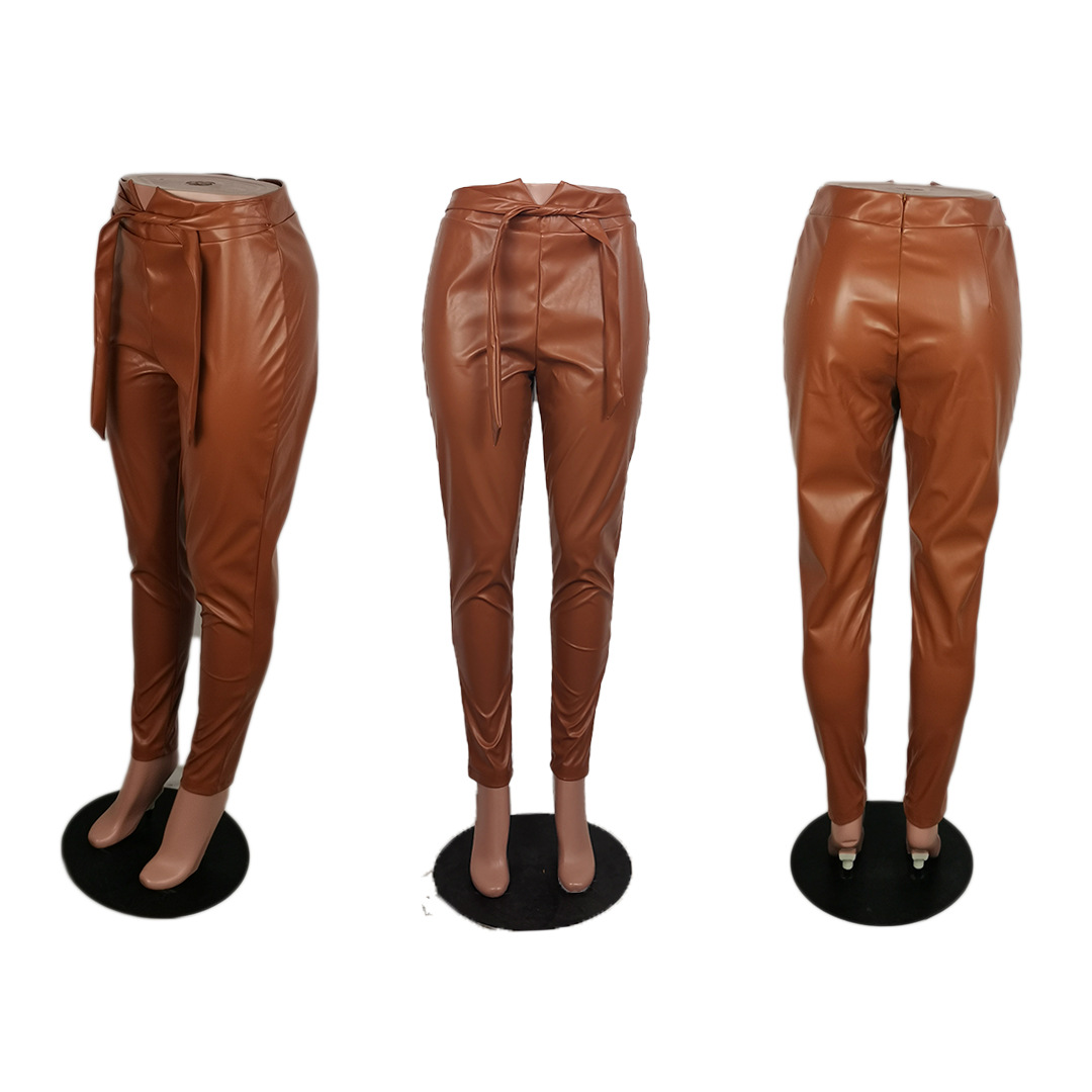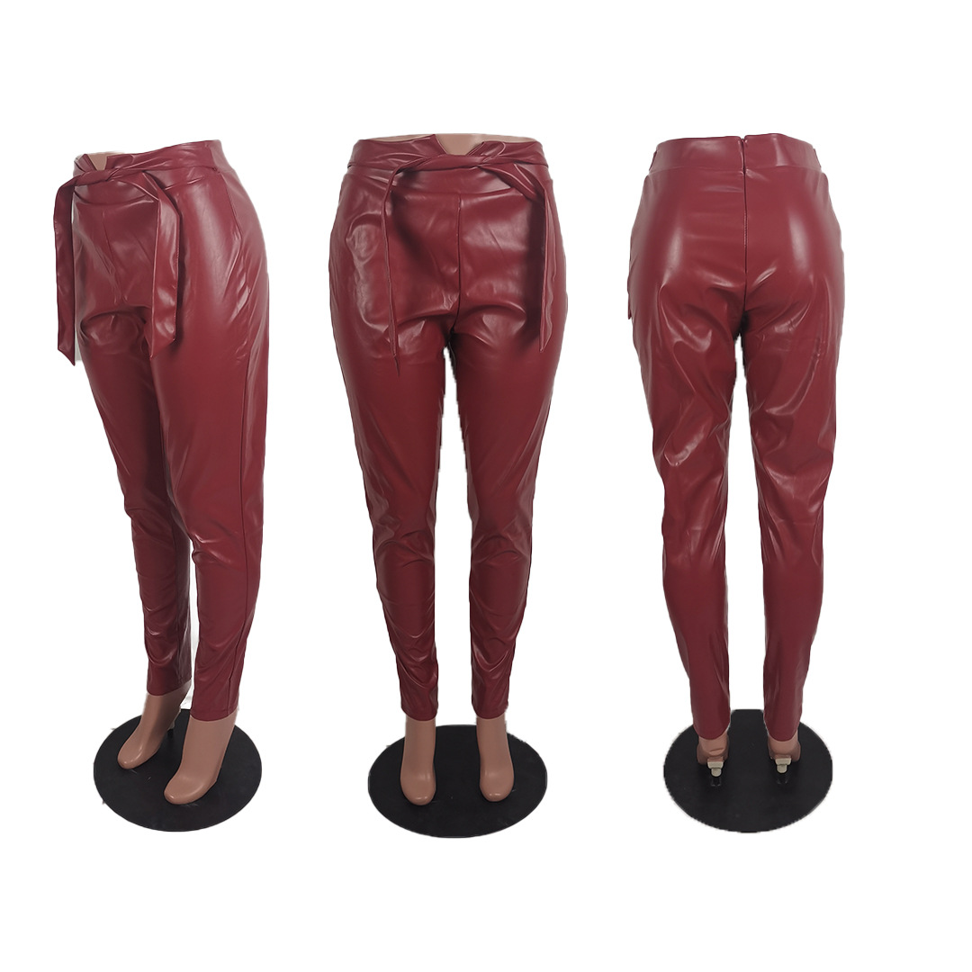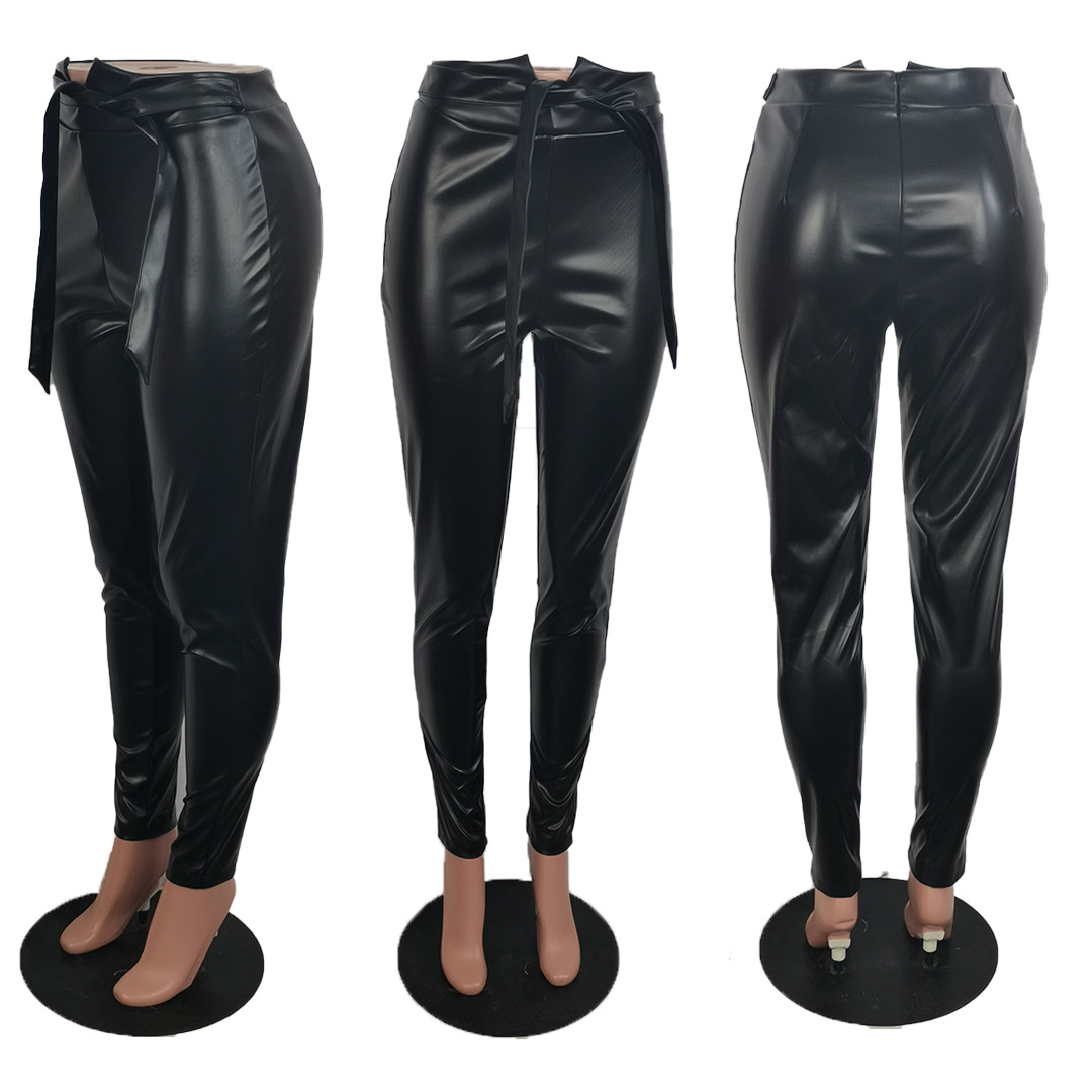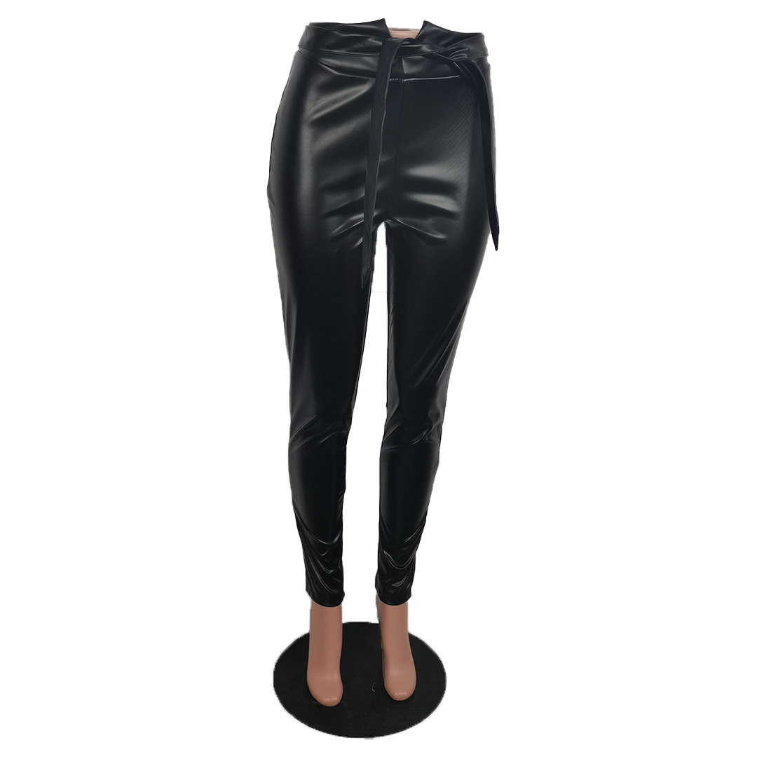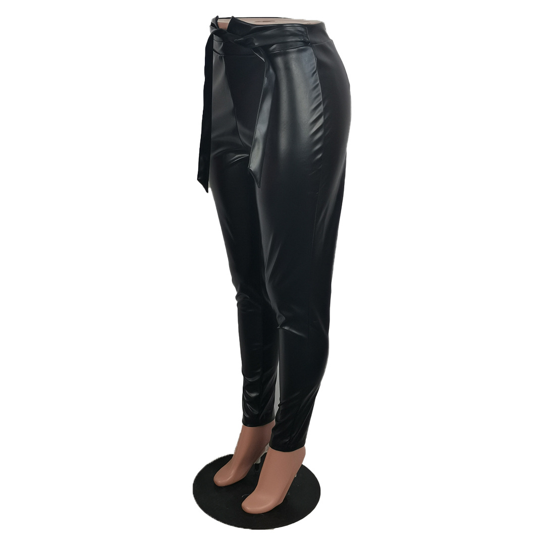 Autumn And Winter European And American Casual Solid Color Leather Pants