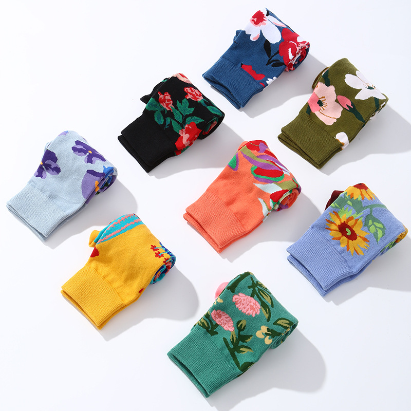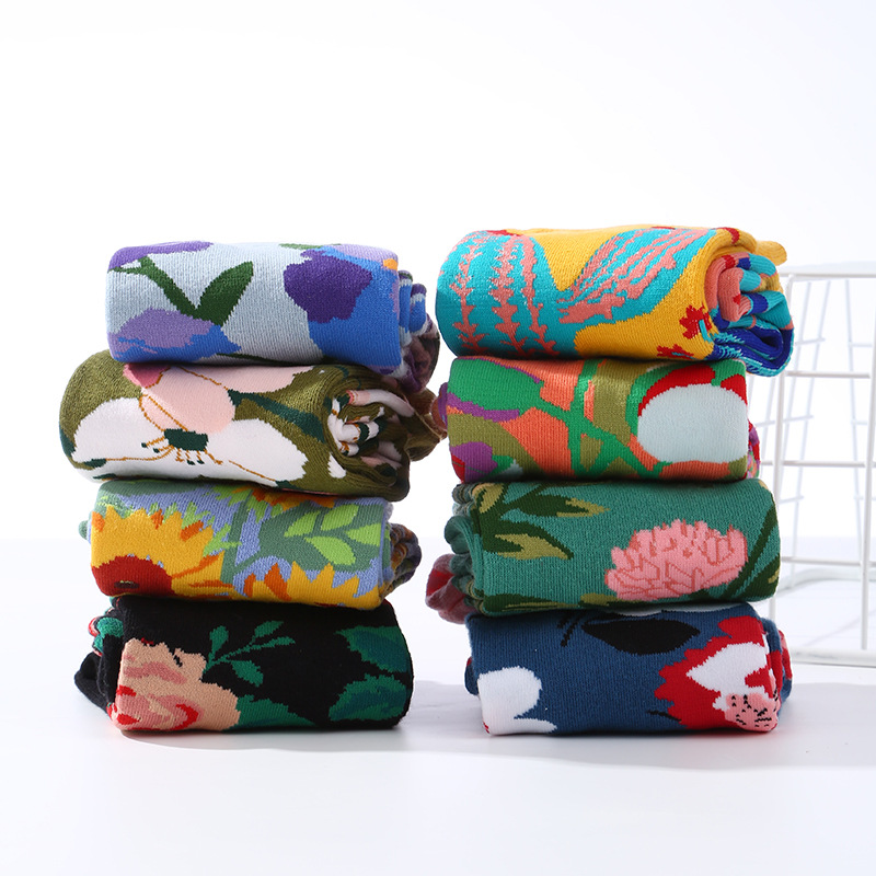 Autumn And Winter Flower Mid-calf Female Cotton Socks