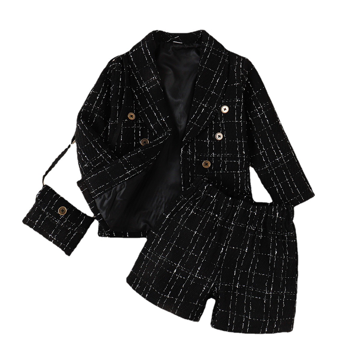 Autumn And Winter Girls' Woolen Plaid Long-sleeved Coat