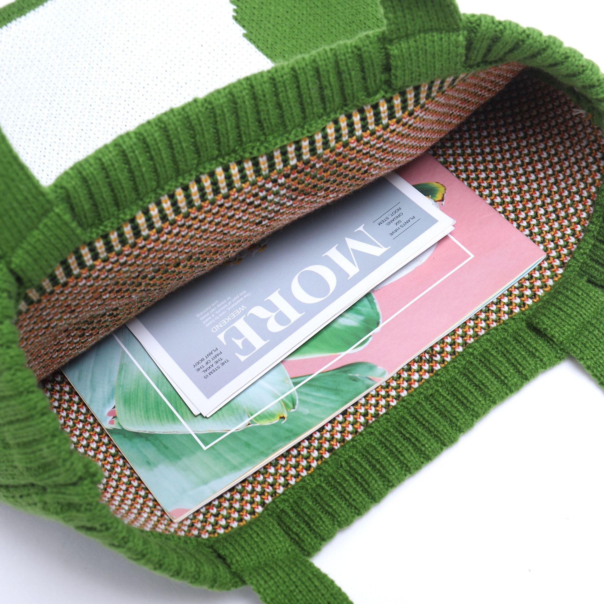 Literary and art small and fresh one-shoulder knitted bag color: green, support pattern customization