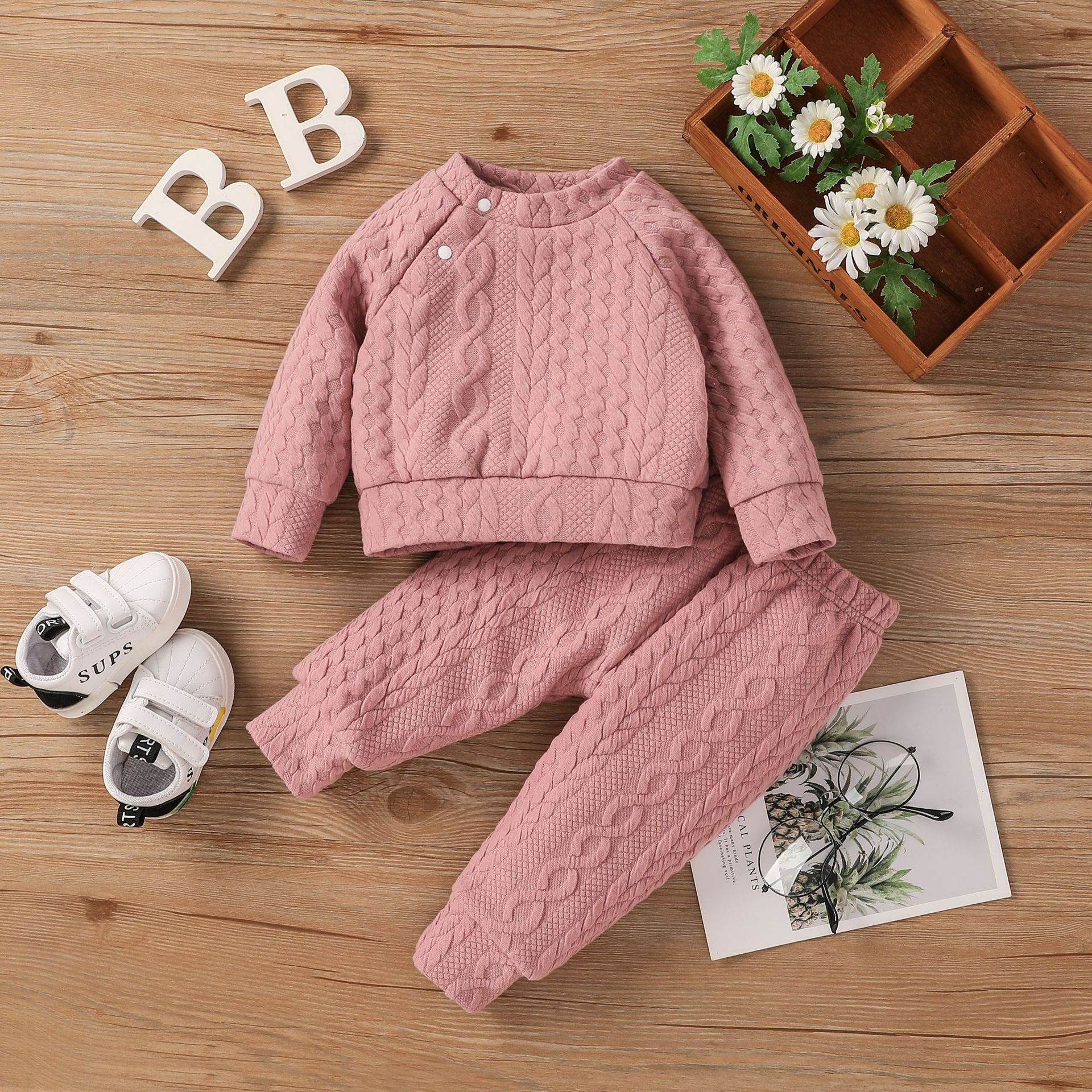 Autumn And Winter Infant Toddler Solid Color Twist Knitted Cotton Open Shoulder Suit