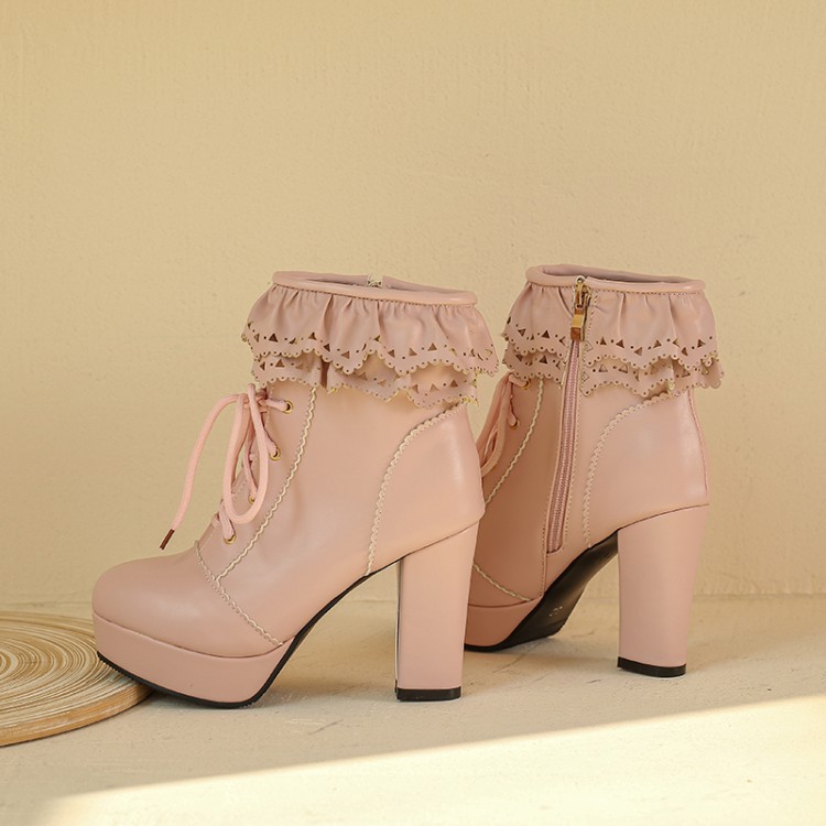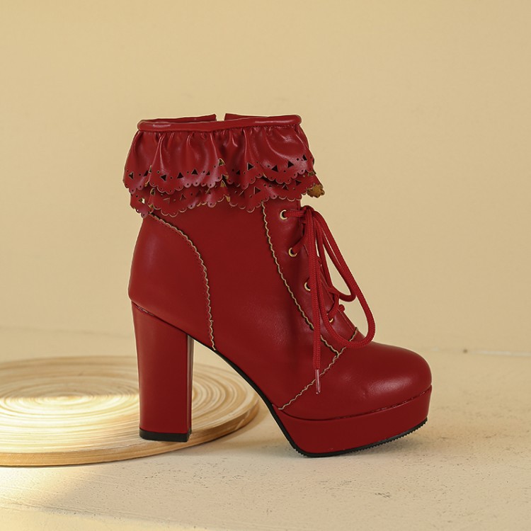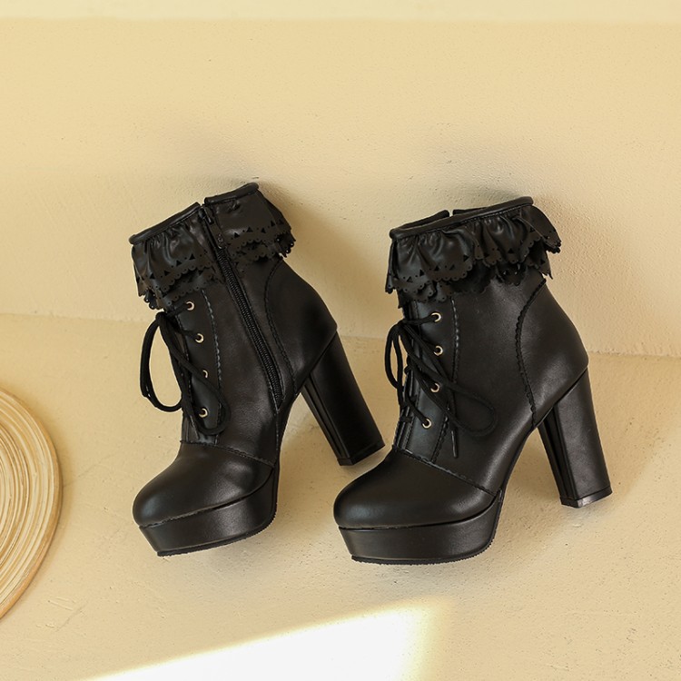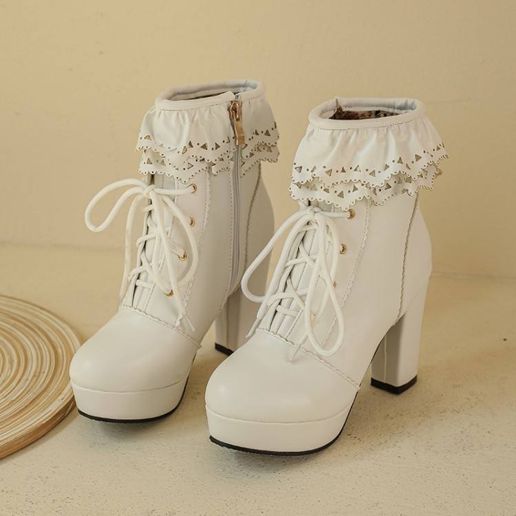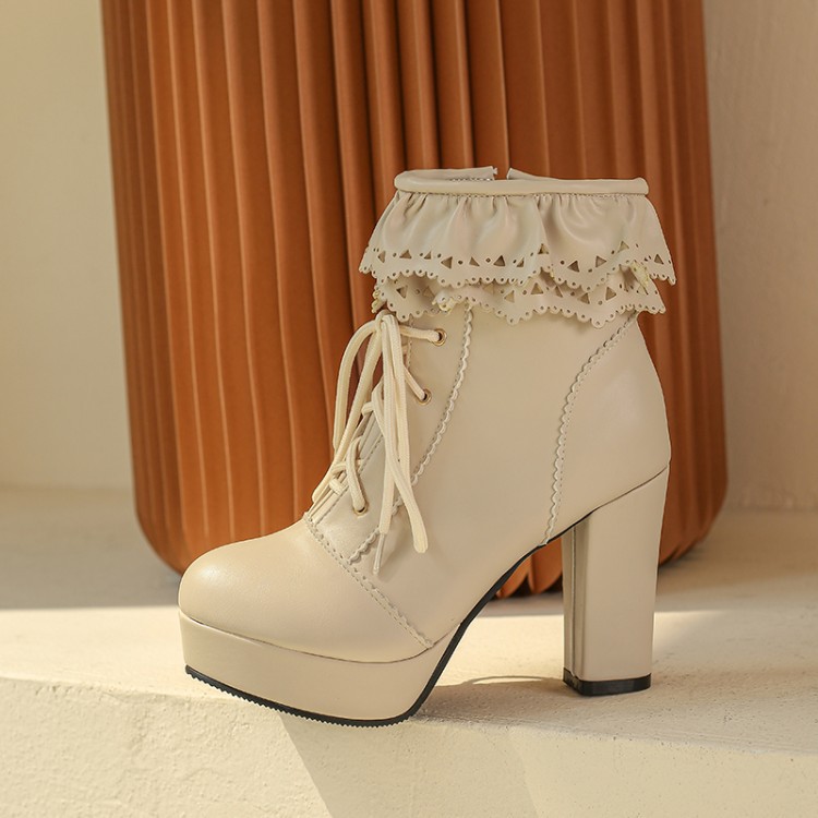 Autumn And Winter Lace Up Women's Thick Heel Lace Fashion Boots