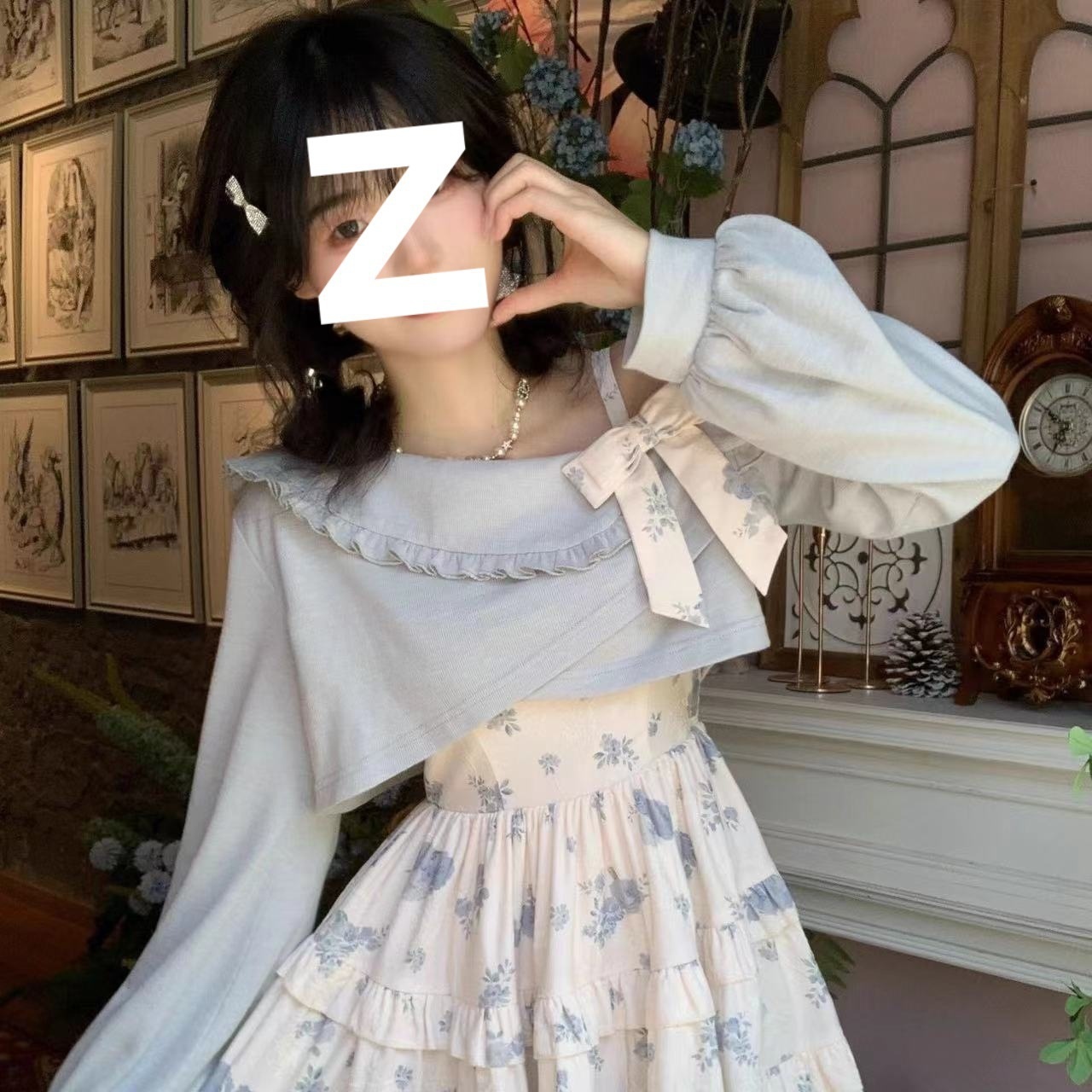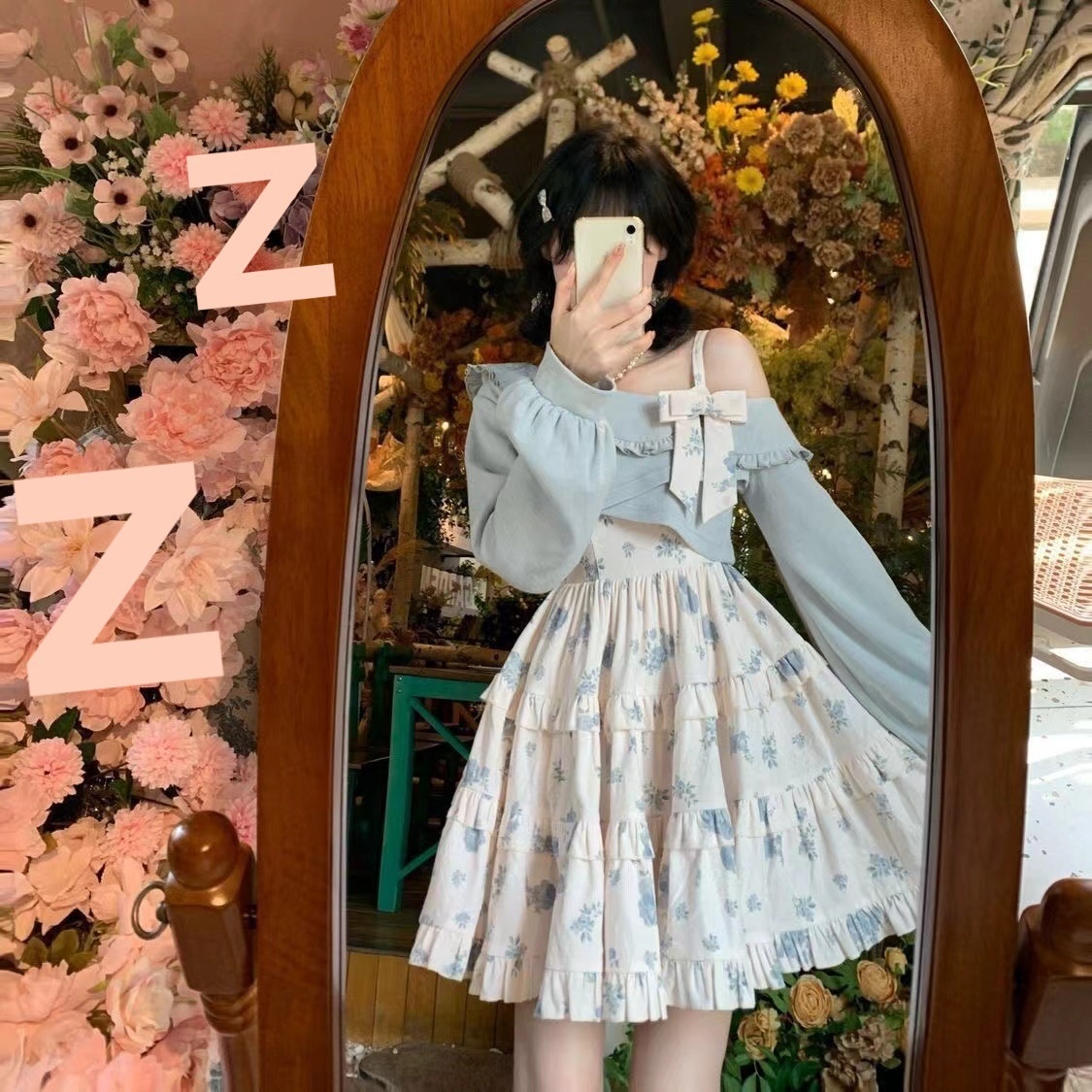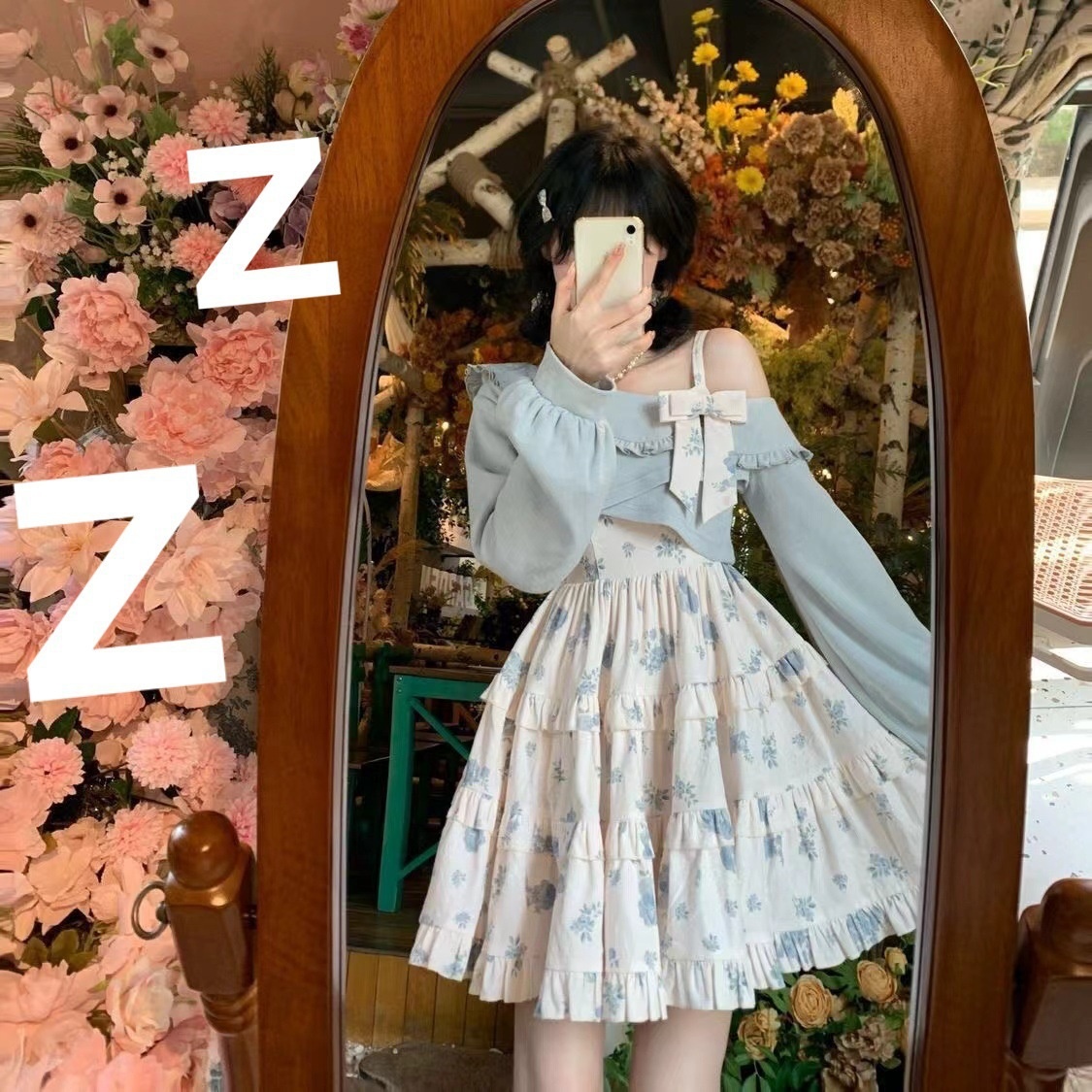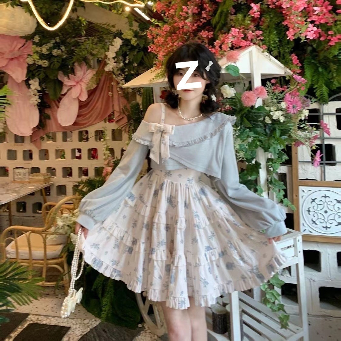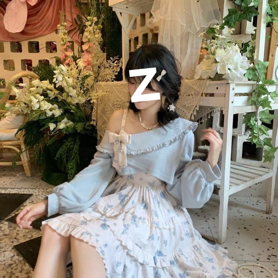 Color: suit * 5476 [blue shawl blue floral slip dress]]