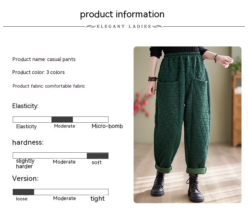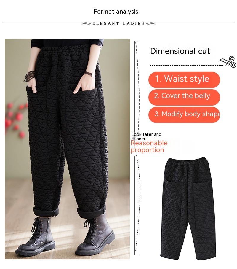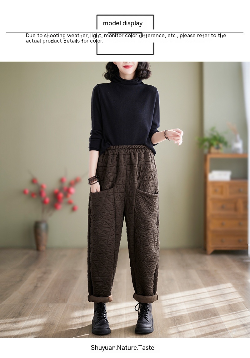 Autumn And Winter Loose Plus Size Quilted Retro Casual Thickening Harem Pants