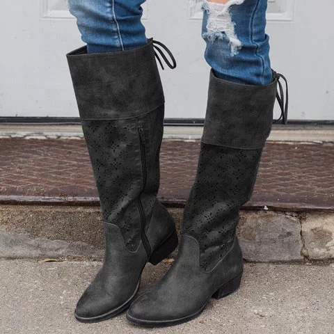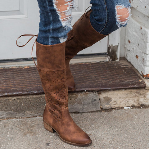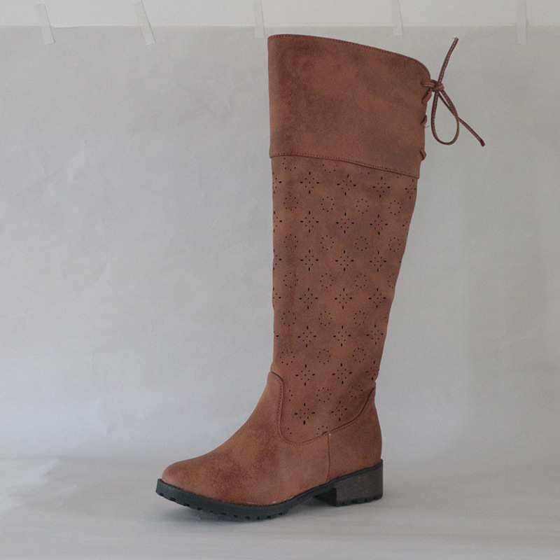 Autumn And Winter Low-heeled Hollow Burnt Half Zipper Knight Boots