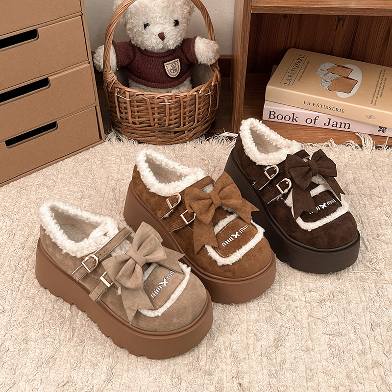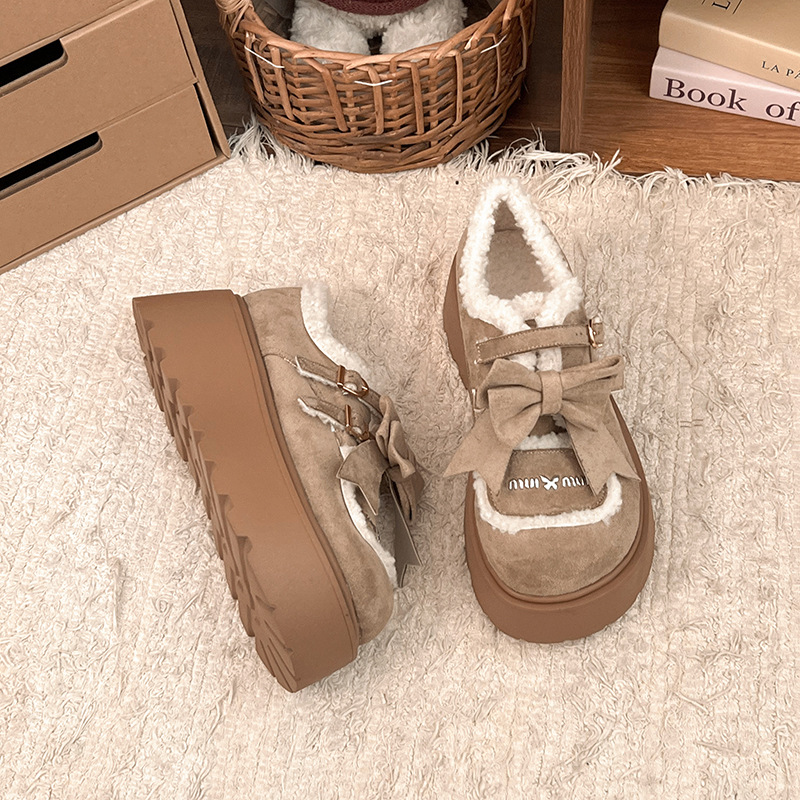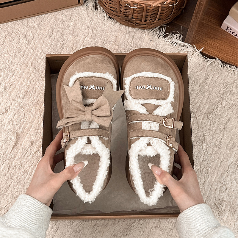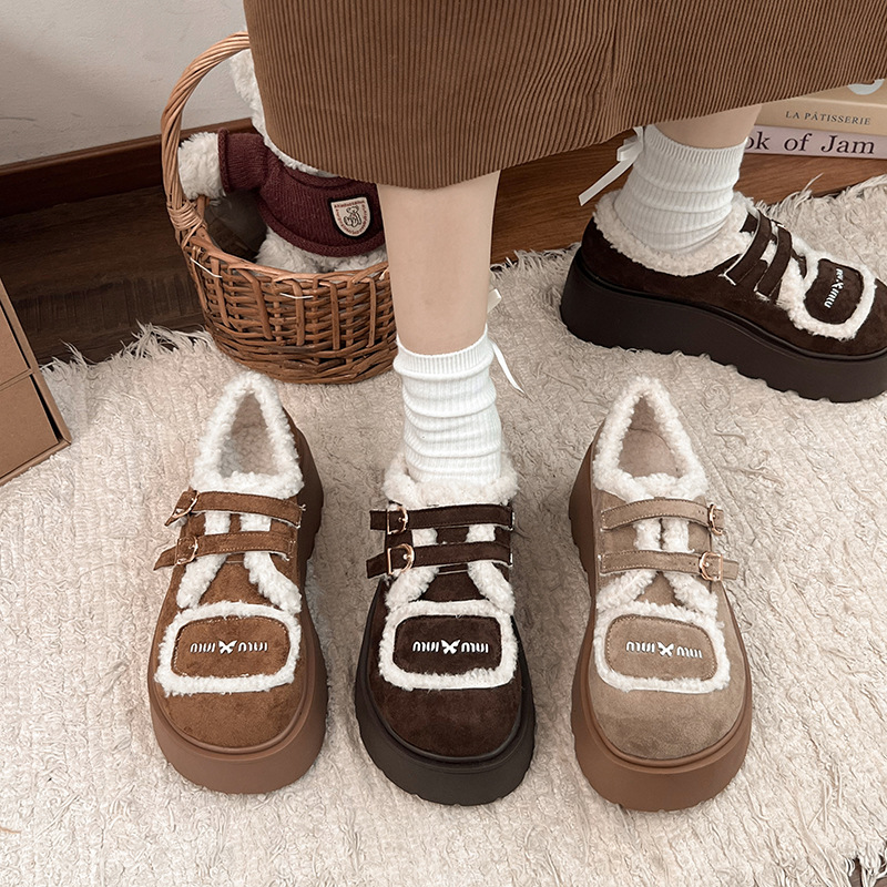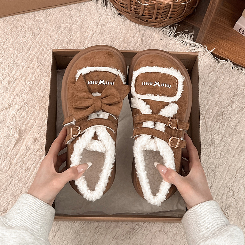 Autumn And Winter New Casual Outdoor Fleece-lined Thick Slip-on Small Cotton Shoes