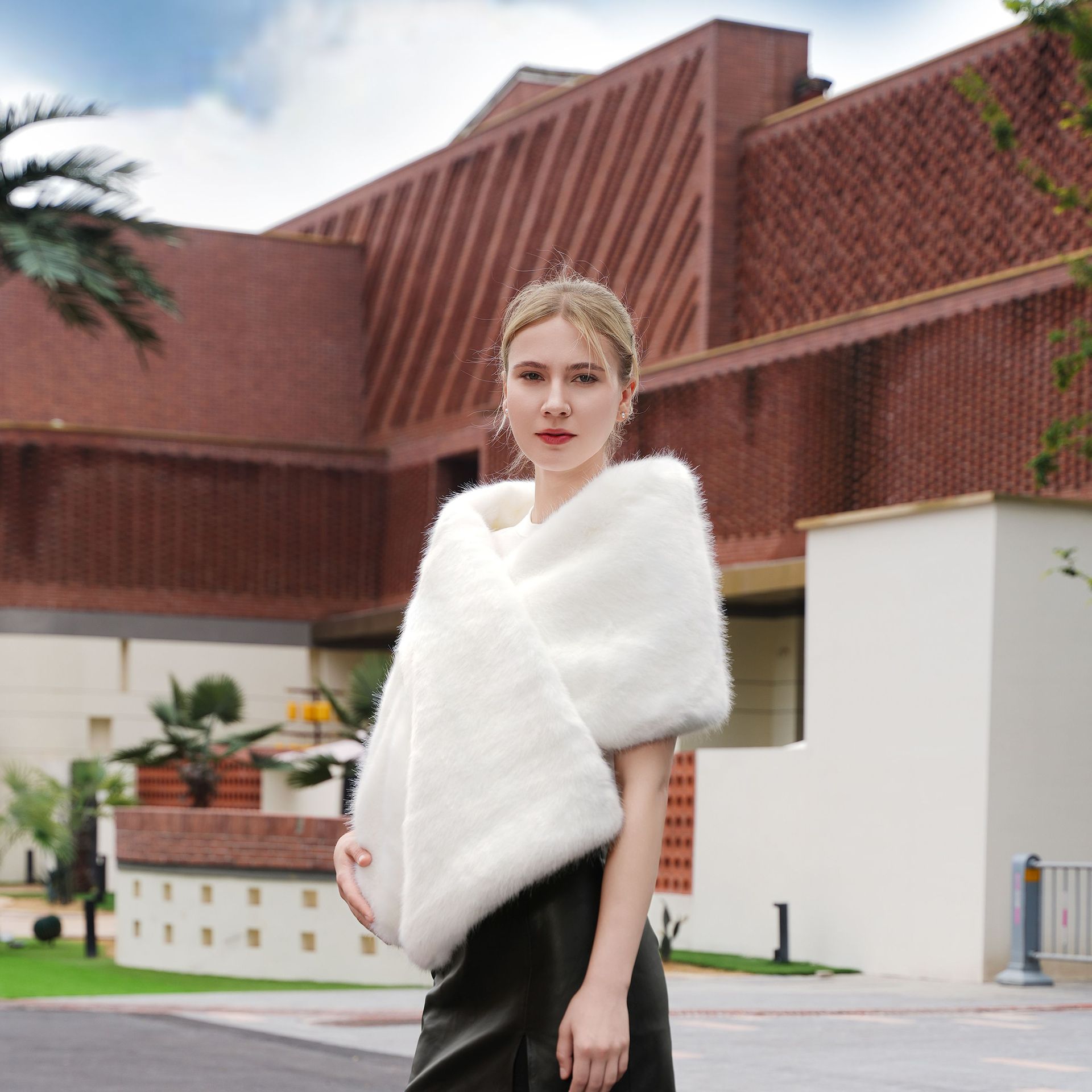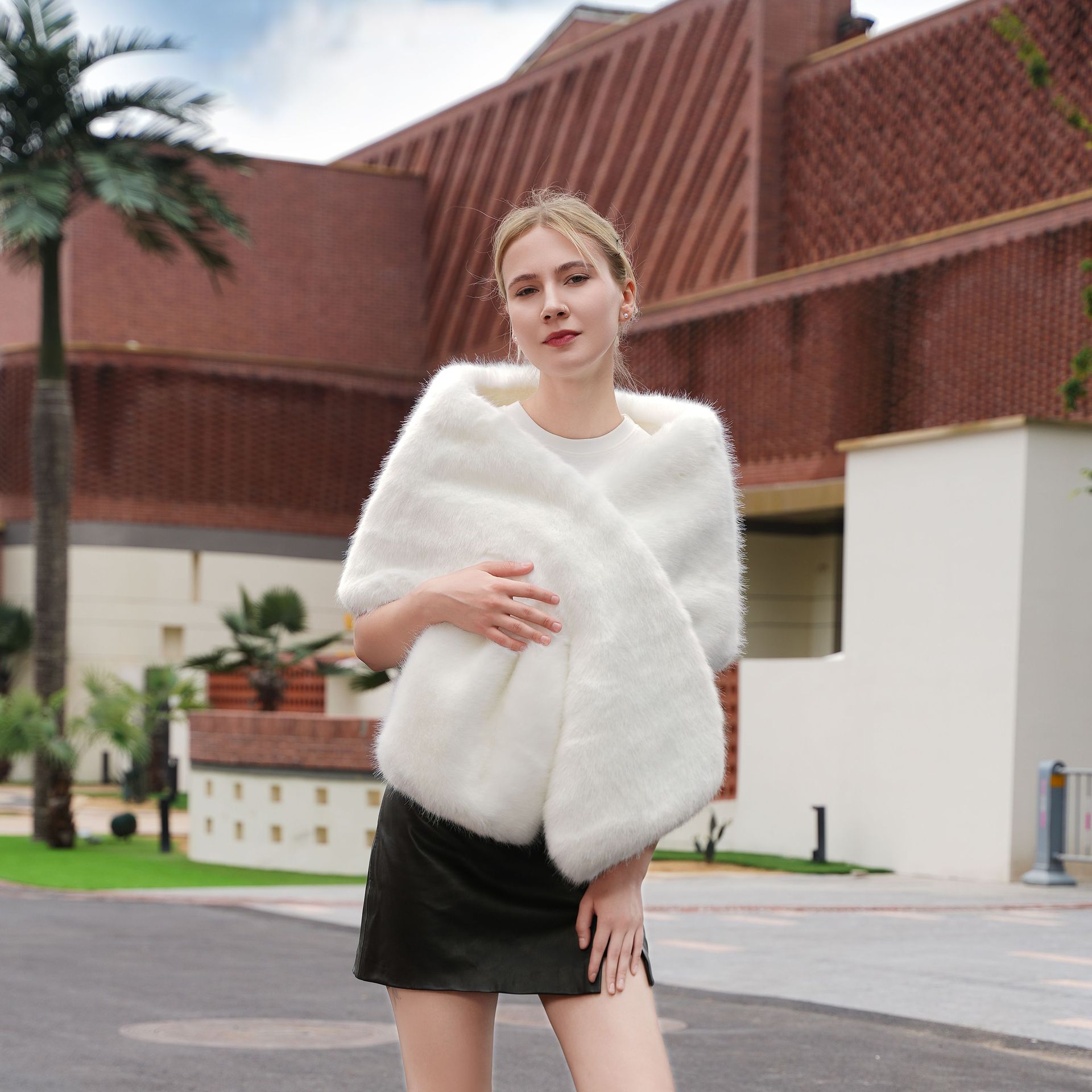 Autumn And Winter New Imitation Fur Waistcoat Cross Scarf