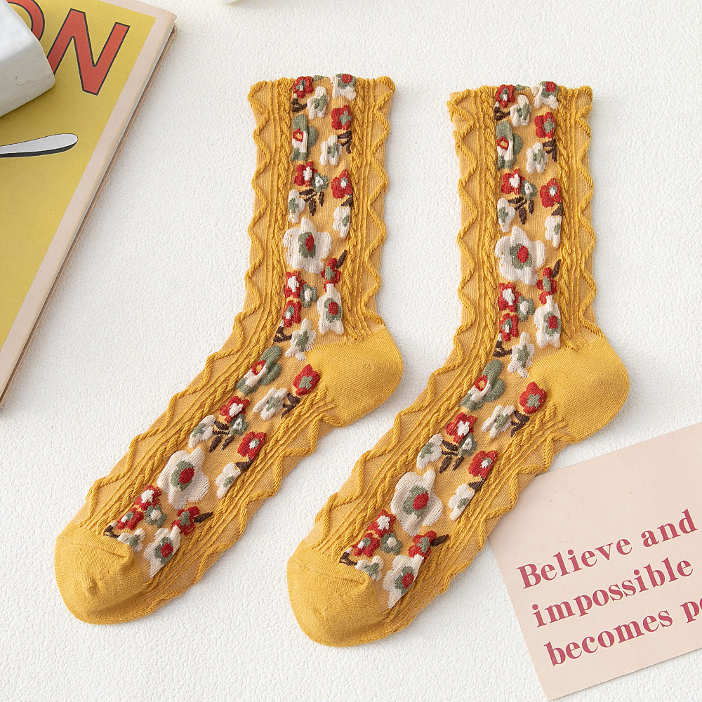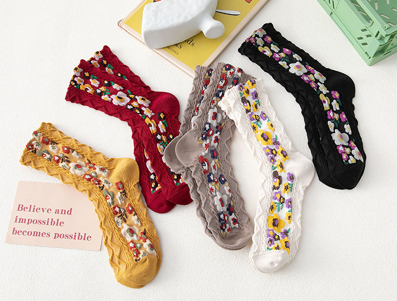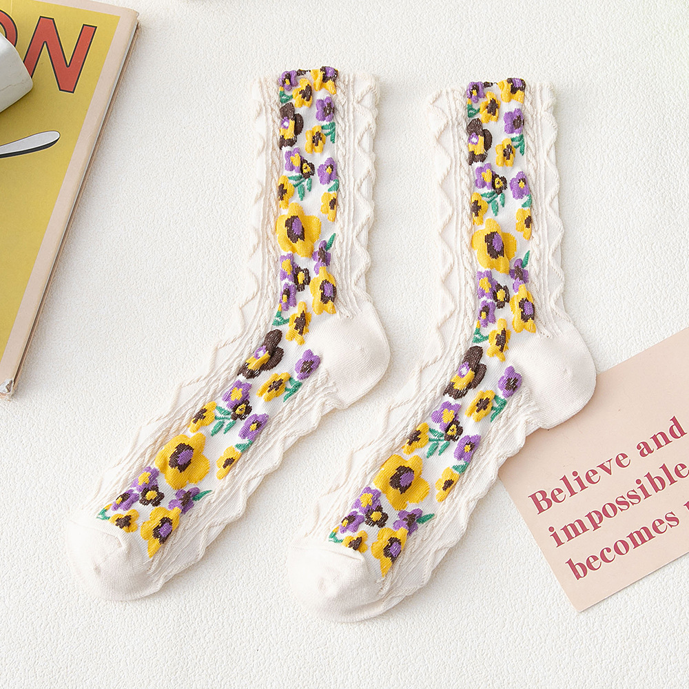 Purpose: beautiful leg shapingMain fabric material: cottonsize: one sizePattern: plant flowersStyle: sweetQuantity: 1 pair