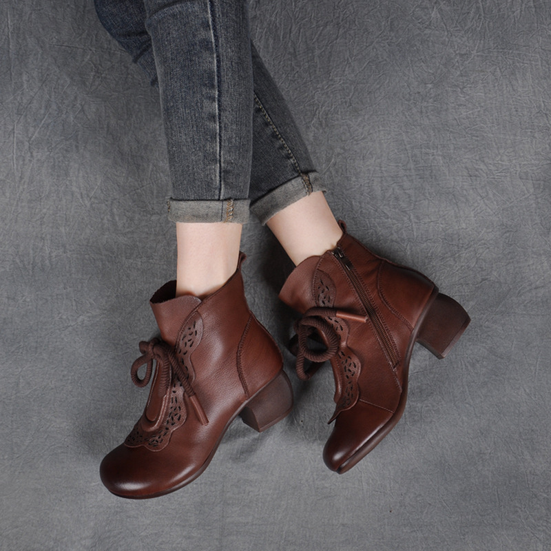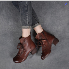 Autumn And Winter New National Style Cowhide Ankle Boots