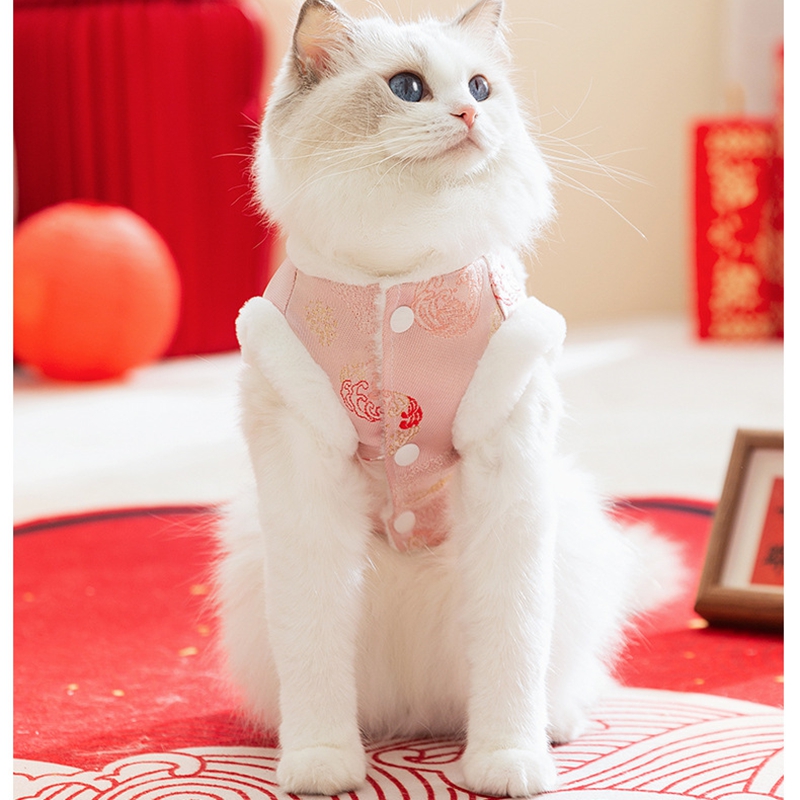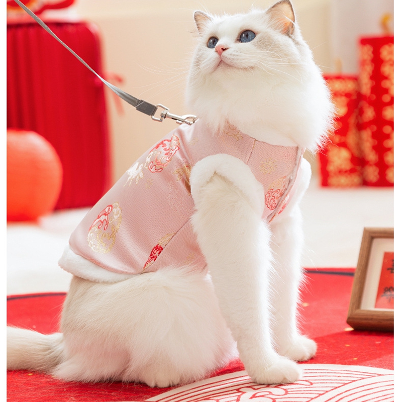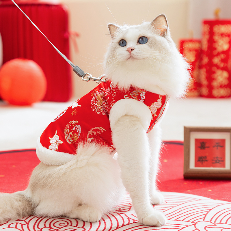 Celebrate the Year of the Rabbit in traditional style with this Lunar New Year Pet Vest! Available in vibrant red (with golden rabbit and prosperity patterns) and elegant pink (with delicate floral and rabbit embroidery), each vest features luxurious brocade fabric, plush faux fur trim, and an integrated leash ring. The intricate rabbit motifs and traditional knot details embody Lunar New Year’s prosperity and cultural heritage, making it perfect for festive gatherings. Ideal for pet parents wanting to share the holiday spirit, this collection combines craftsmanship, festive charm, and functional design, ensuring your furry companion stands out with Lunar New Year elegance.