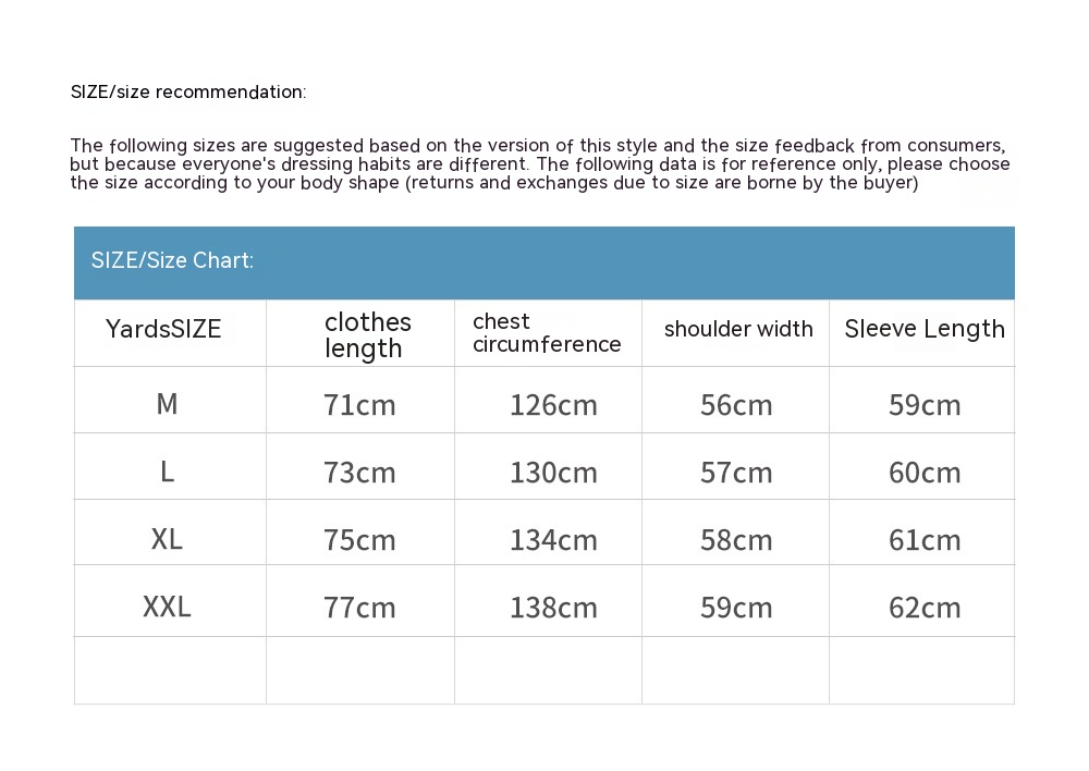 1. Asian sizes are 1 to 2 sizes smaller than European and American people. Choose the larger size if your size between two sizes. Please allow 2-3cm differences due to manual measurement. 2. Please check the size chart carefully before you buy the item, if you don't know how to choose size, please contact our customer service. 3.As you know, the different computers display colors differently, the color of the actual item may vary slightly from the following images.
