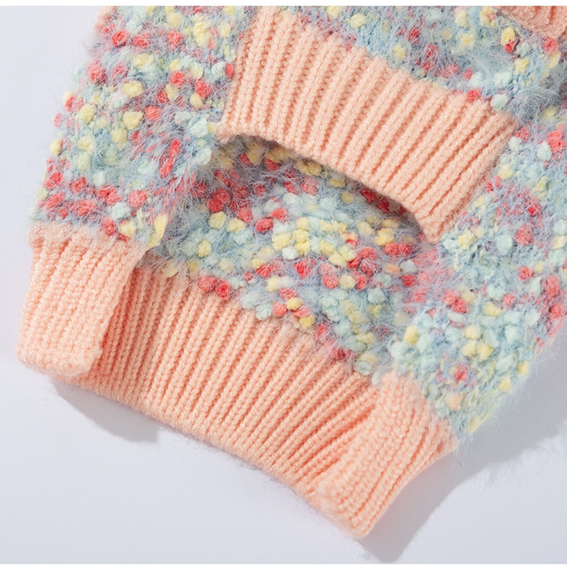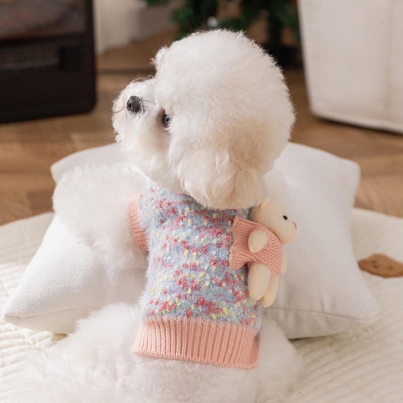 Add an adorable touch to your pet’s wardrobe with this Teddy Bear Pocket Pet Sweater! Featuring a speckled knit design in soft blue, pink, and yellow hues, a ribbed pink collar and hem, and a cute teddy bear plush toy in a front pocket, this jumper offers both warmth and whimsical charm. The fuzzy, textured fabric ensures comfort, while the playful teddy bear detail adds a unique, photo-worthy element. Perfect for casual outings or cozy indoor days, this sweater combines coziness, cuteness, and a standout pocket companion, making it a must-have for pet parents who want their furry companions to stay stylishly warm and irresistibly adorable.