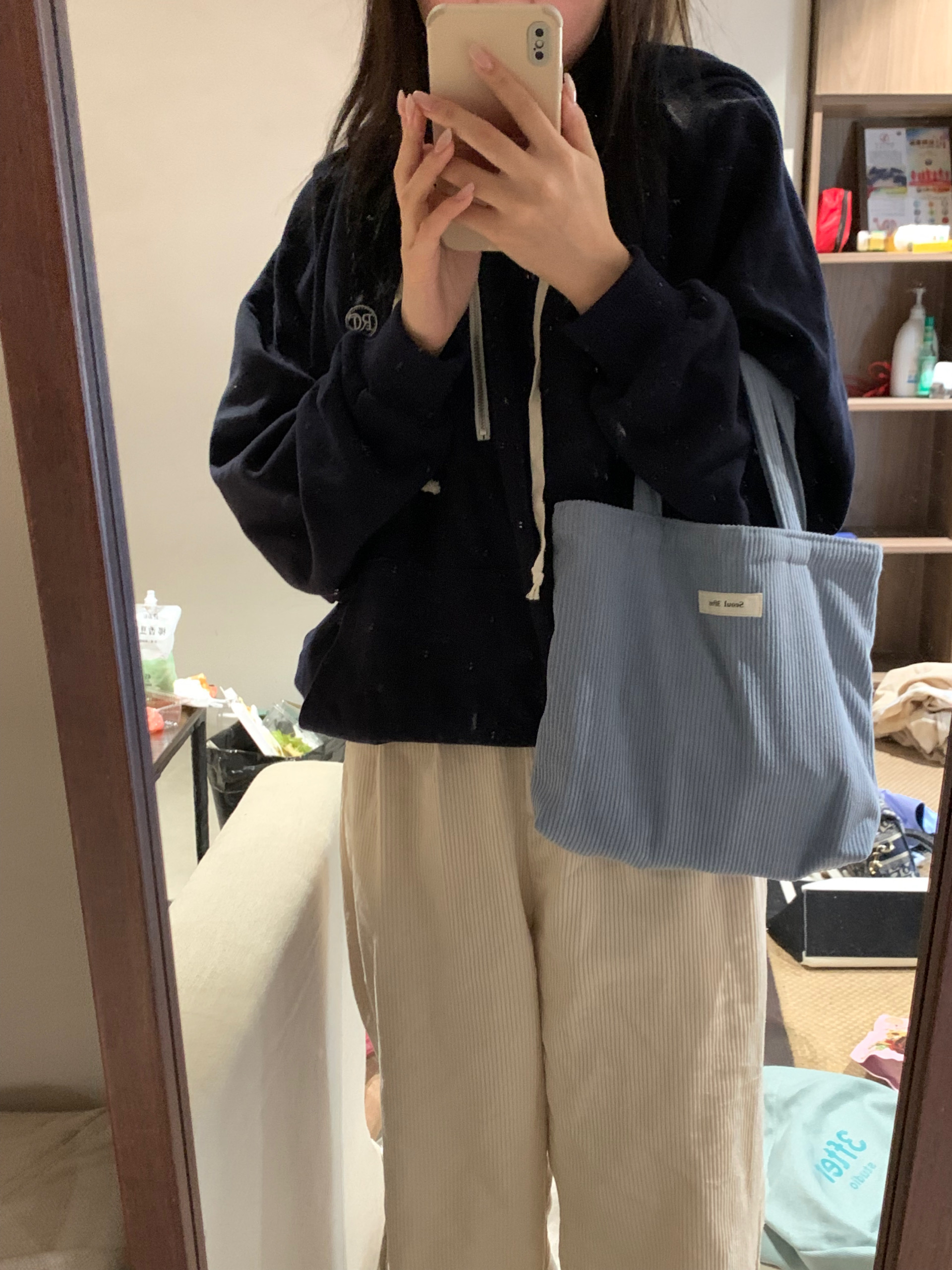 Dimensions: 30cm wide * 22cm high * 7cm wide on the bottom sideMaterial: CorduroyStyle: Handbag
