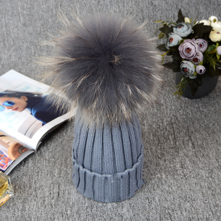 Decorative fur ball: raccoon fur ball, snap fastener installation can be removed