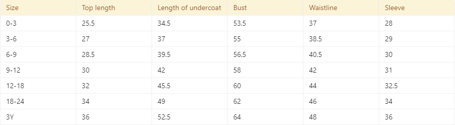 Suitable height: 0-3,3-6,6-9,9-12,12-18,18-24,3Y
