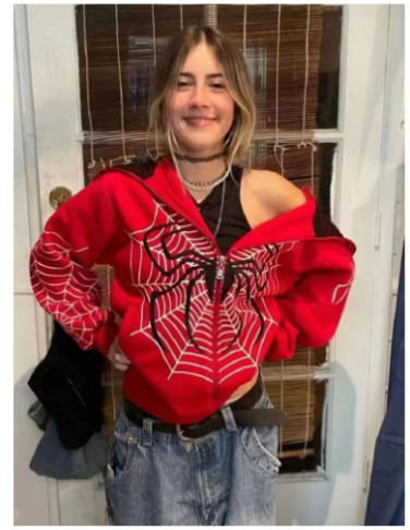 Autumn And Winter Spider Web Printed Street Trendsetter Full Zip Pullover Hoodie