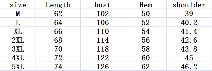 Size: M, L, XL, XXL, XXXL, XXXXL