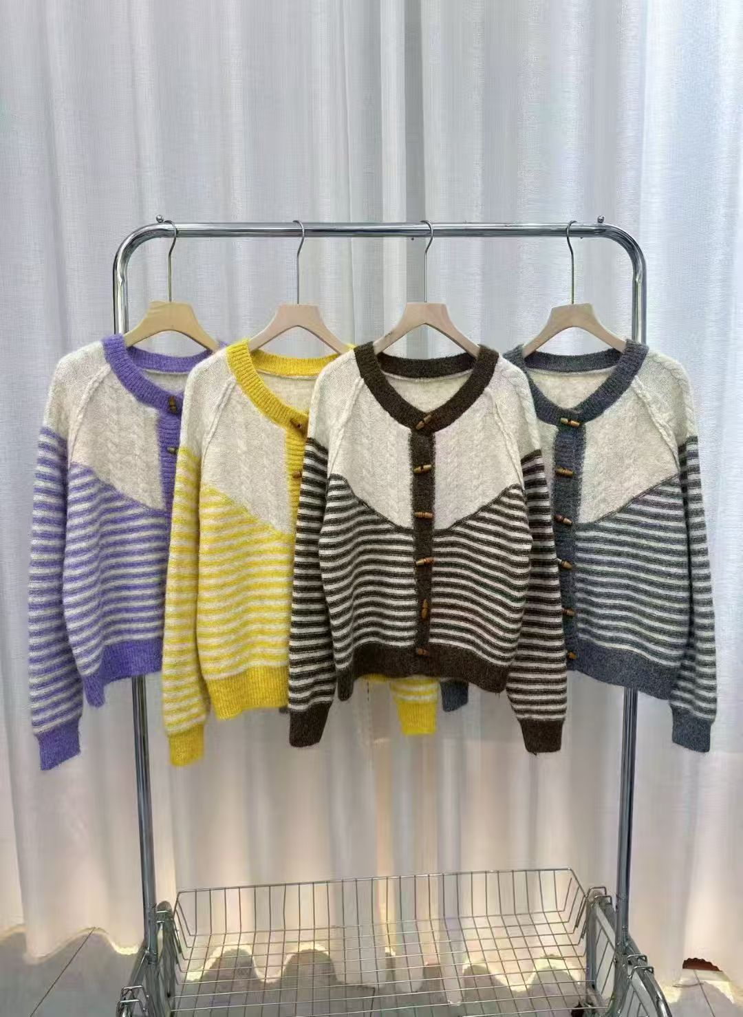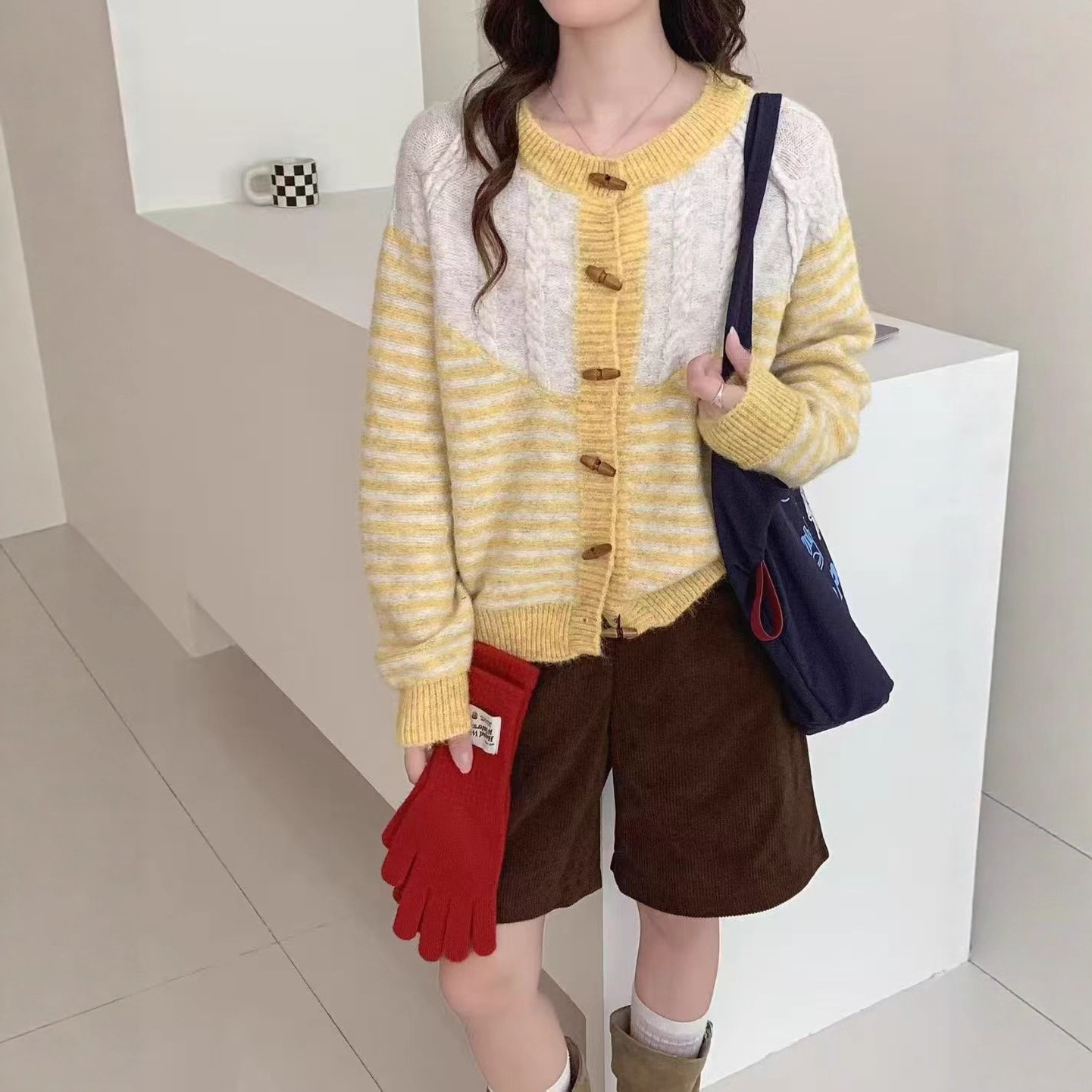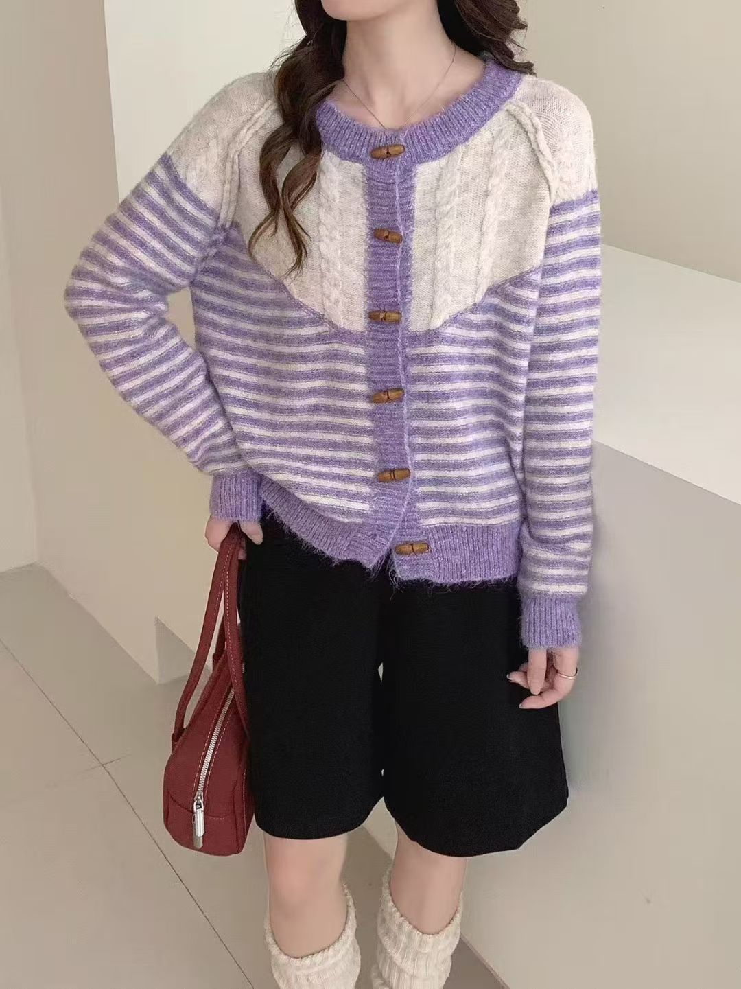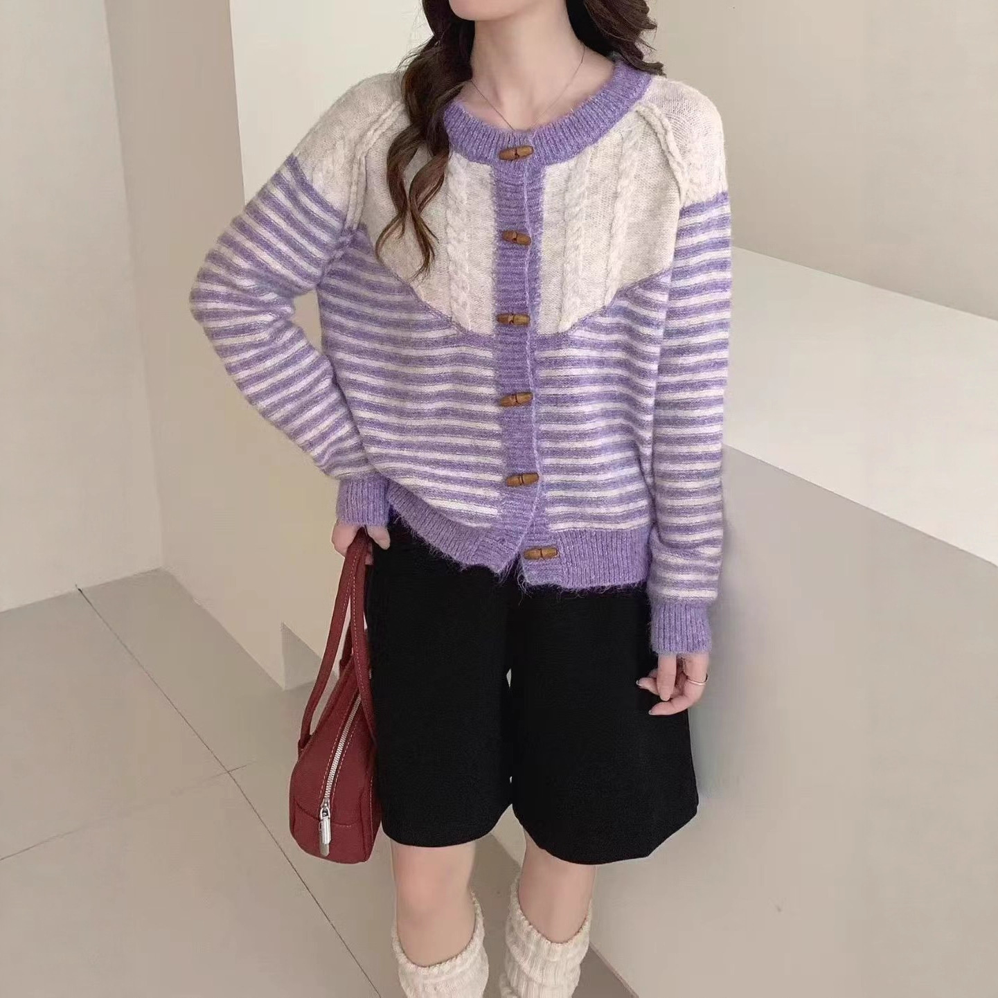 Autumn And Winter Striped Loose And Lazy Style Knitted Cardigan