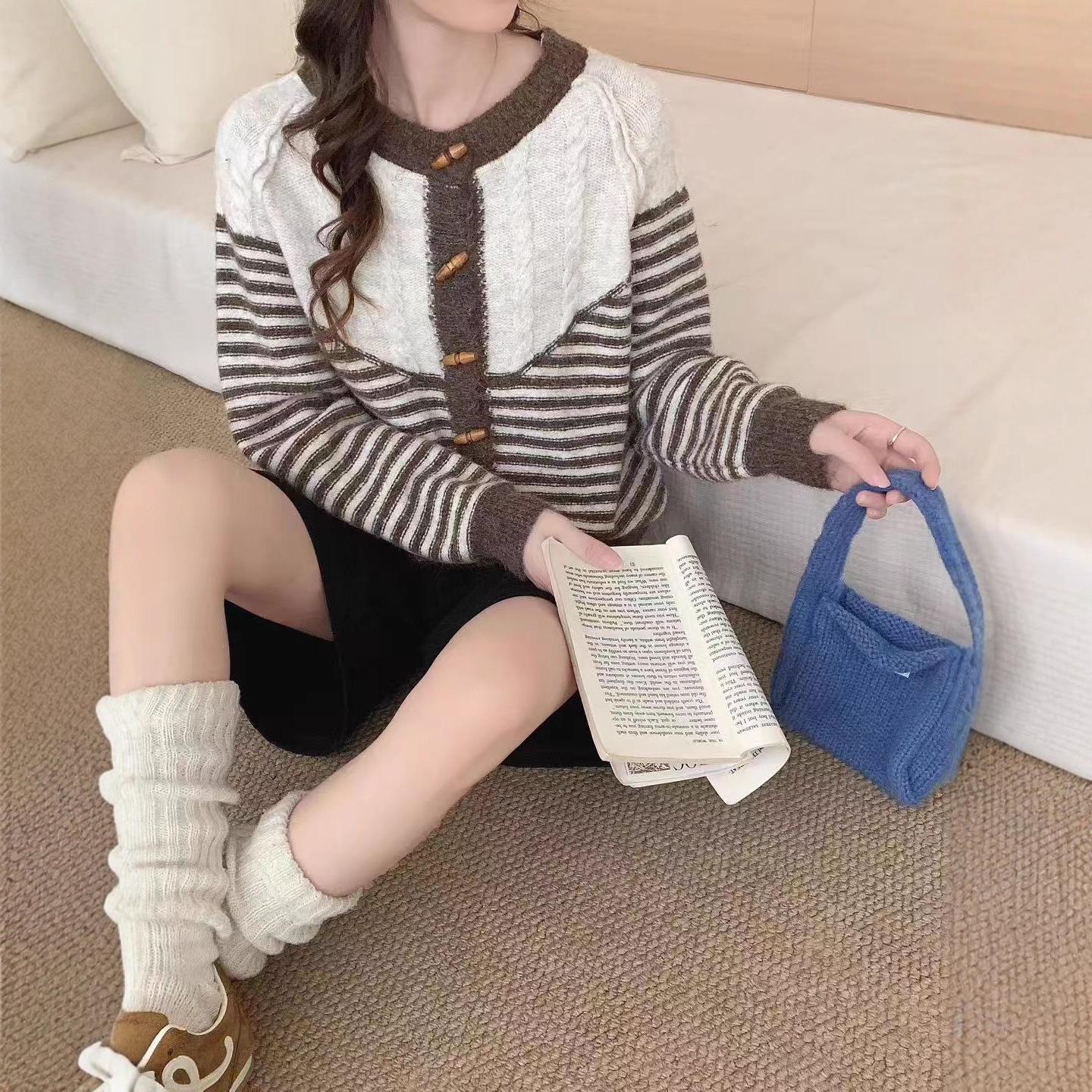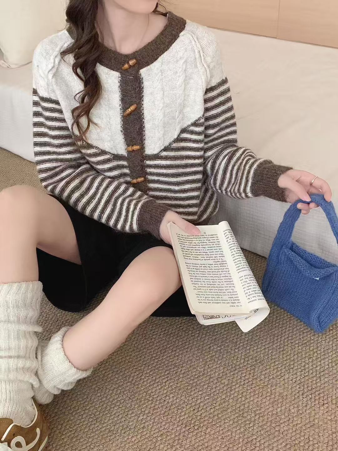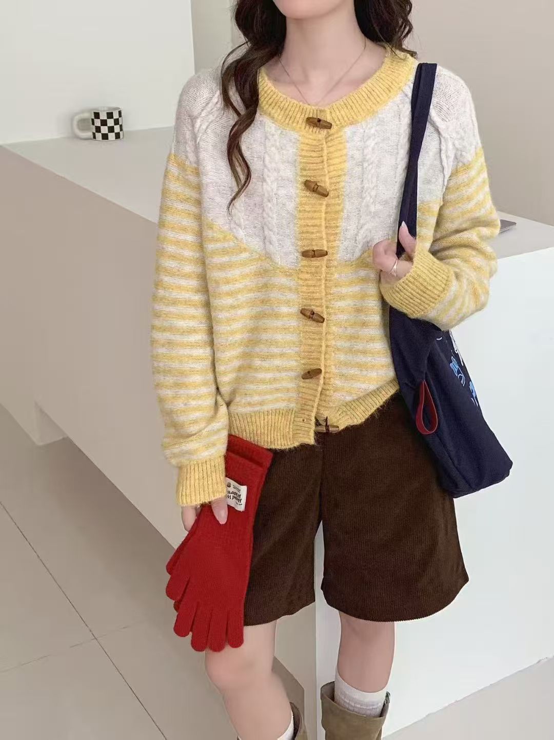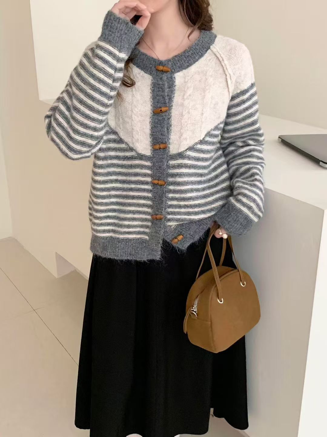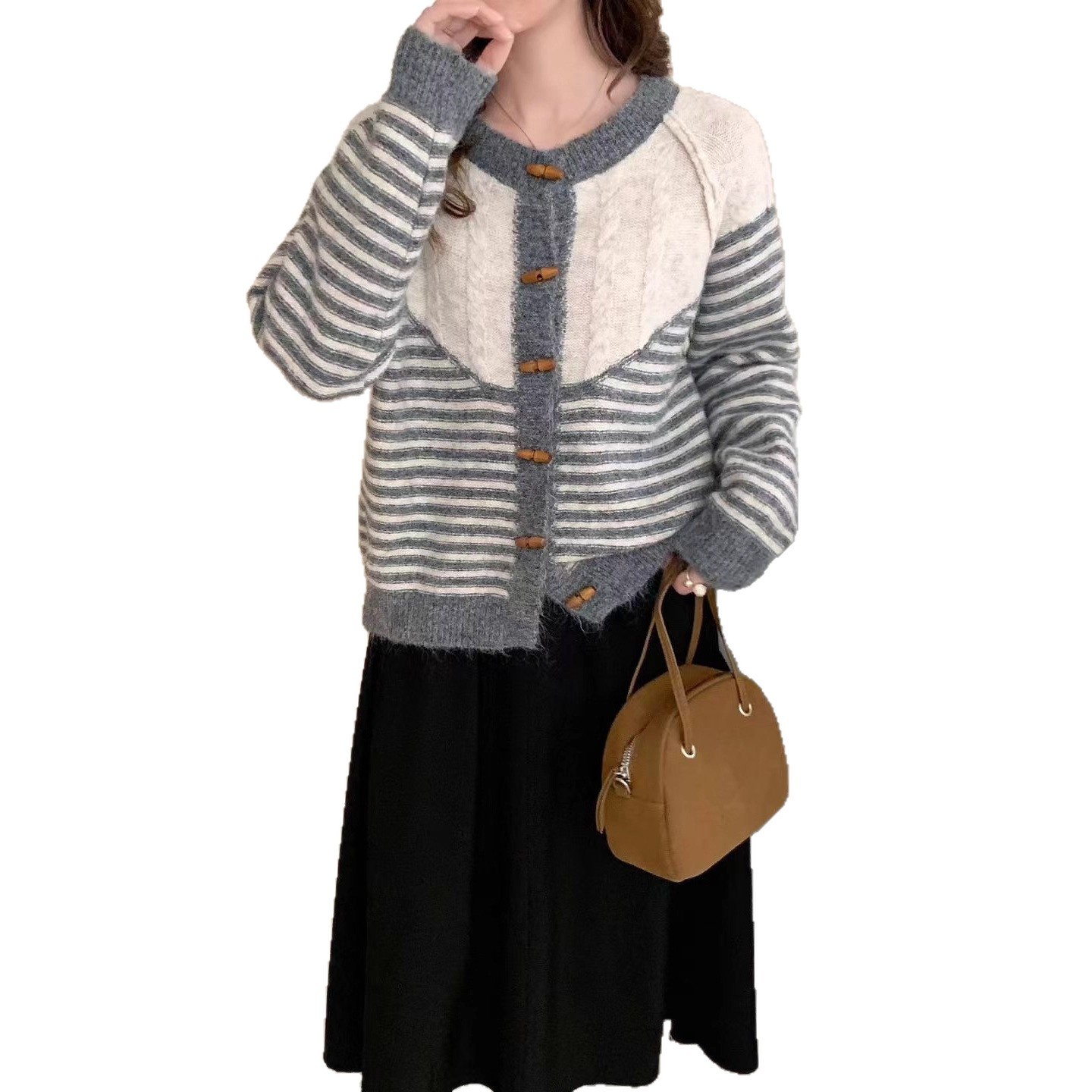 Autumn And Winter Striped Loose And Lazy Style Knitted Cardigan