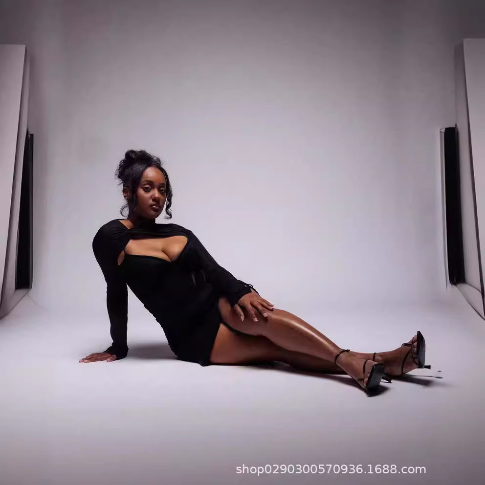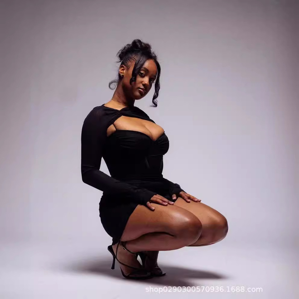 Autumn And Winter Supply Long Sleeve Tube Top Sexy Dress Double Layer Pleated Slim-fit Mini Skirt