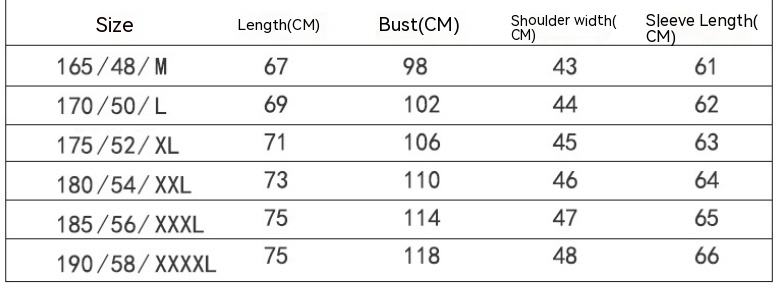 Size: 105/M,110/L,115/XL,120/2XL,125/3XL,130/4XL