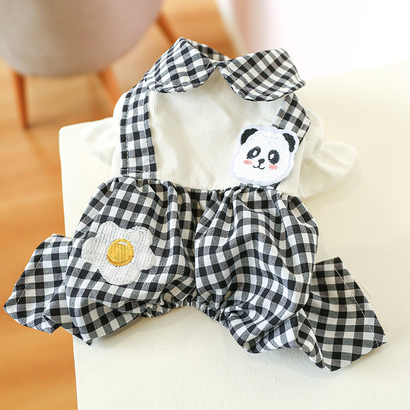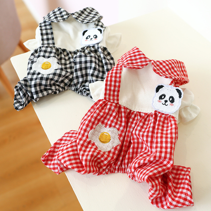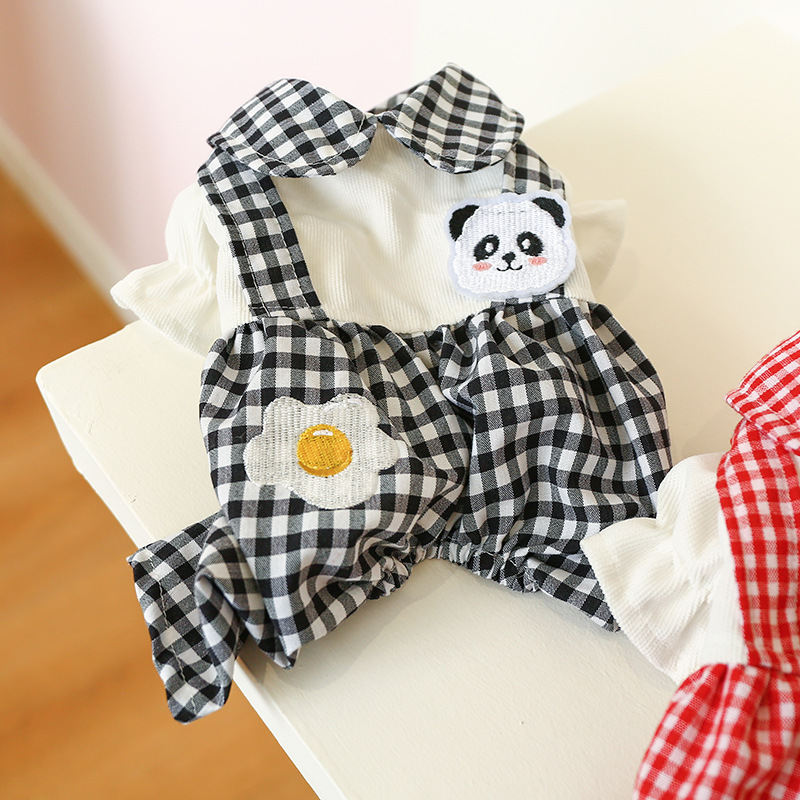 Color: poached egg panda suspender pants-black and white plaid